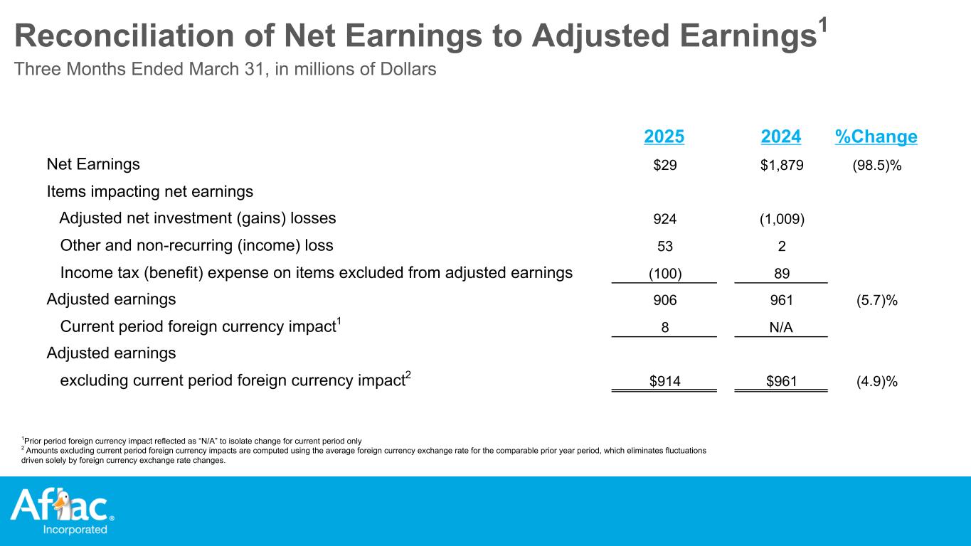フロリダ州コロンバス-2025年4月30日-アフラック・インコーポレーテッド(NYSE: AFL)は本日、第1四半期決算を発表した。