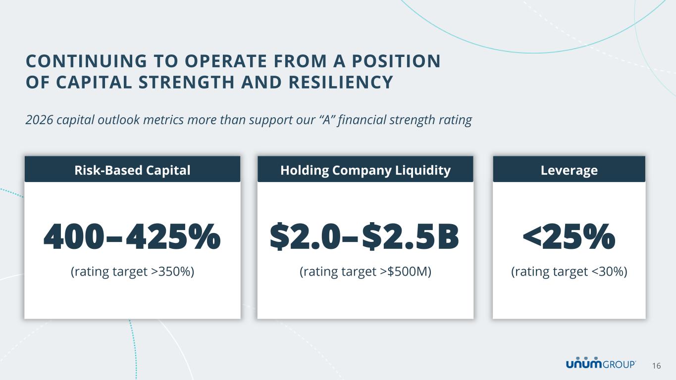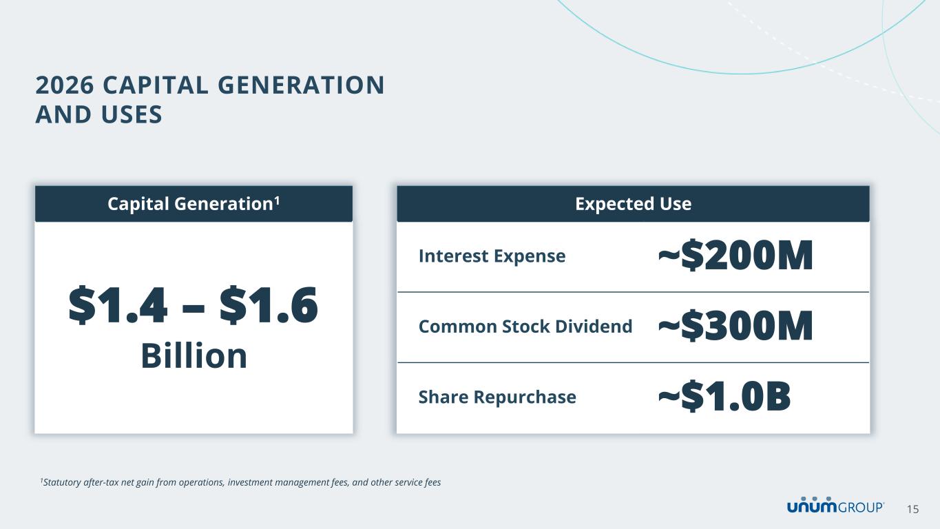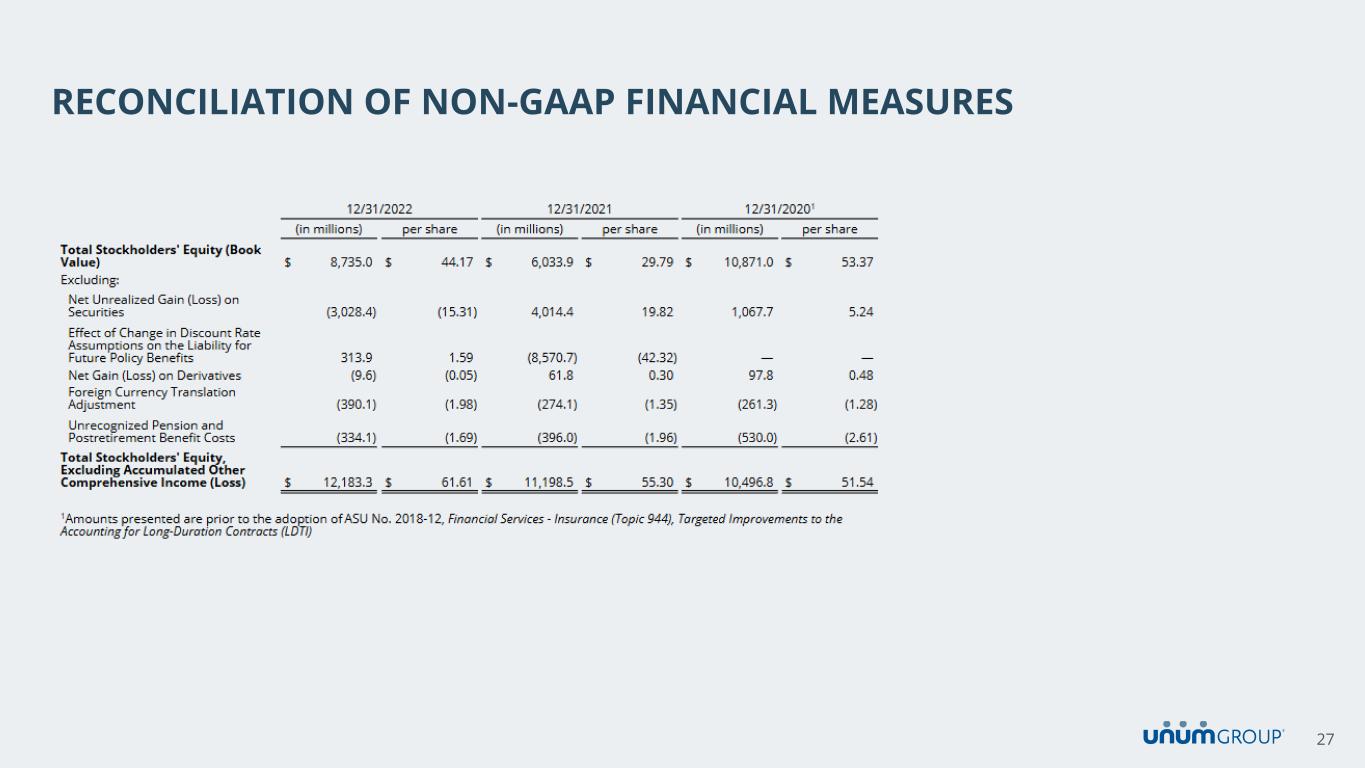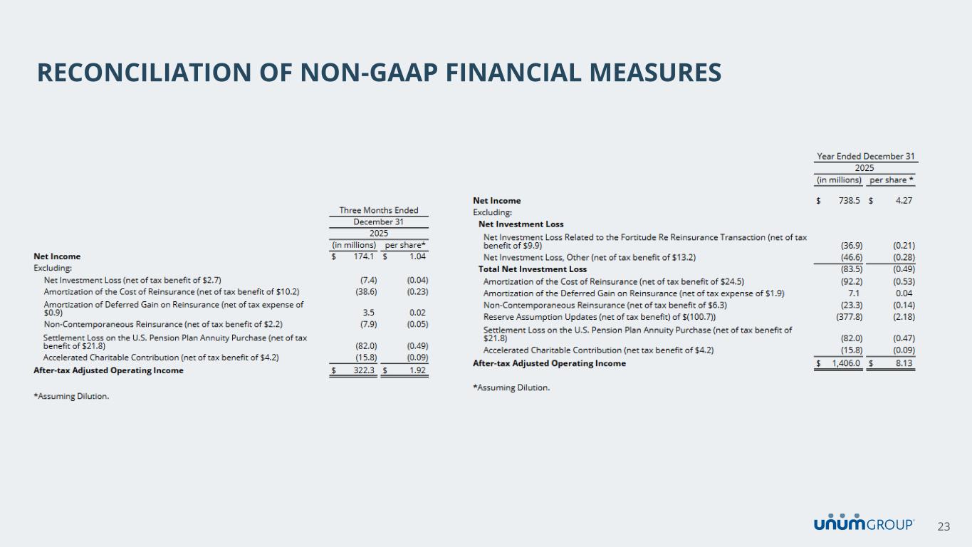 | Unum US | $ | 263.3 | $ | 4,581.8 | 23.0 | % | ||||||||||||||