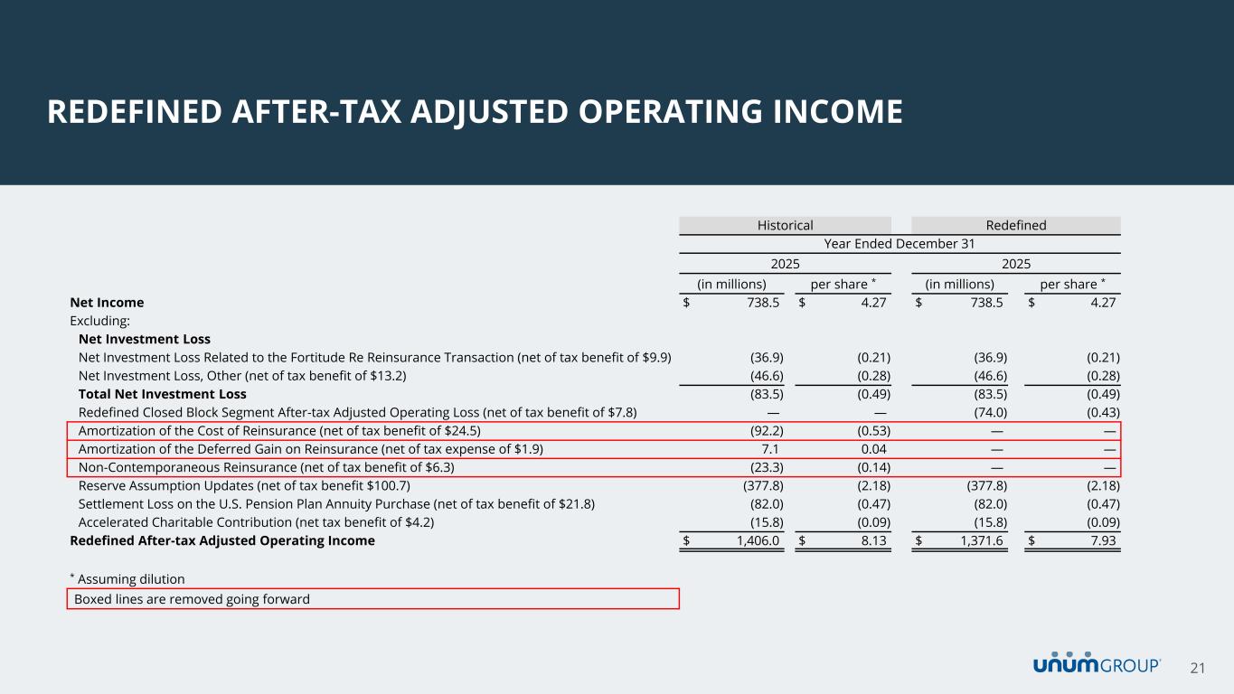 | Unum US | $ | 228.9 | $ | 4,348.2 | 21.1 | % | ||||||||||||||