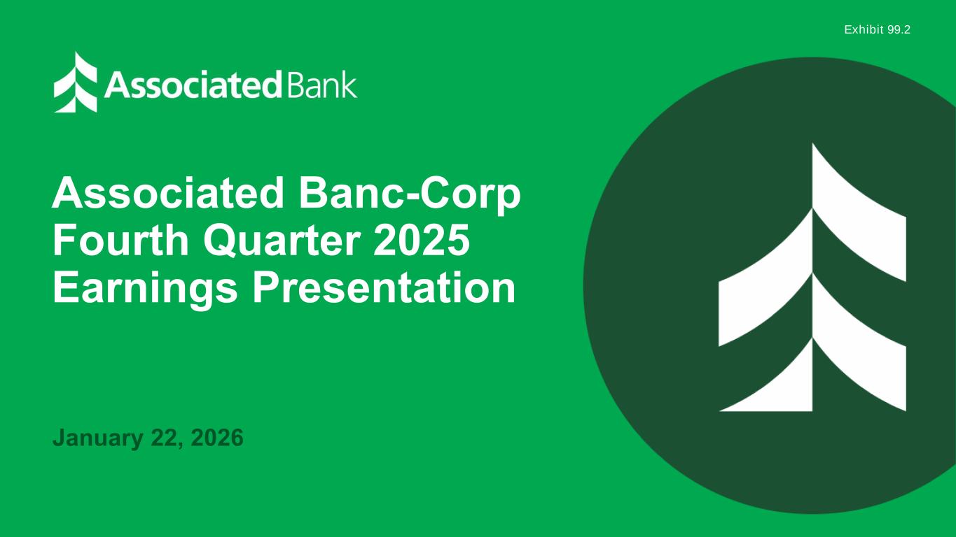 On January 22, 2026, Associated Banc-Corp announced its earnings for the quarter ended December 31, 2025. A copy of the registrant’s press release containing this information and the slide presentation discussed on the conference call for investors and analysts on January 22, 2026, are being furnished as Exhibit 99.1 and Exhibit 99.2, respectively, to this Report on Form 8-K and are incorporated herein by reference.