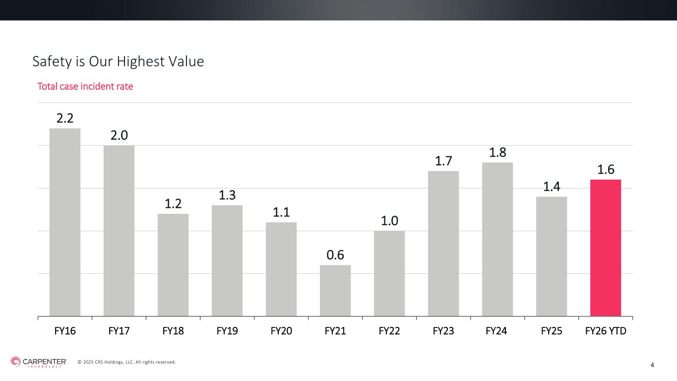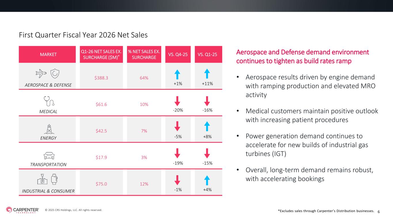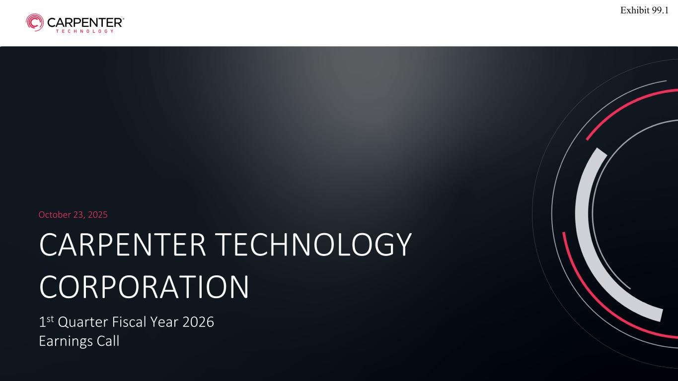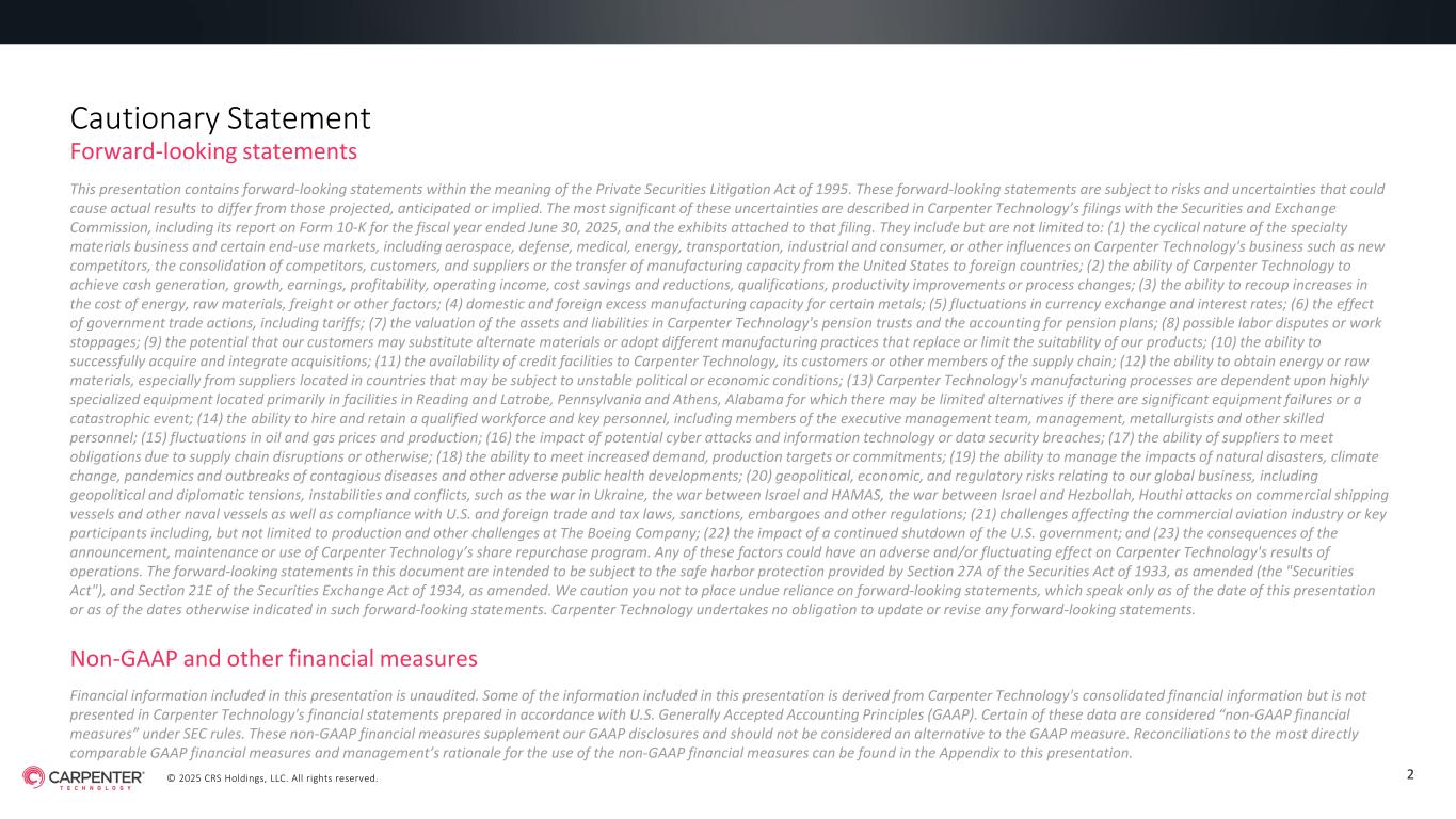 © 2025 CRS Holdings, LLC. All rights reserved. CARPENTER TECHNOLOGY CORPORATION 1st Quarter Fiscal Year 2026 Earnings Call October 23, 2025