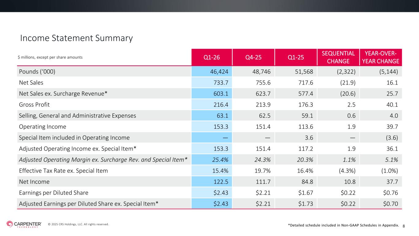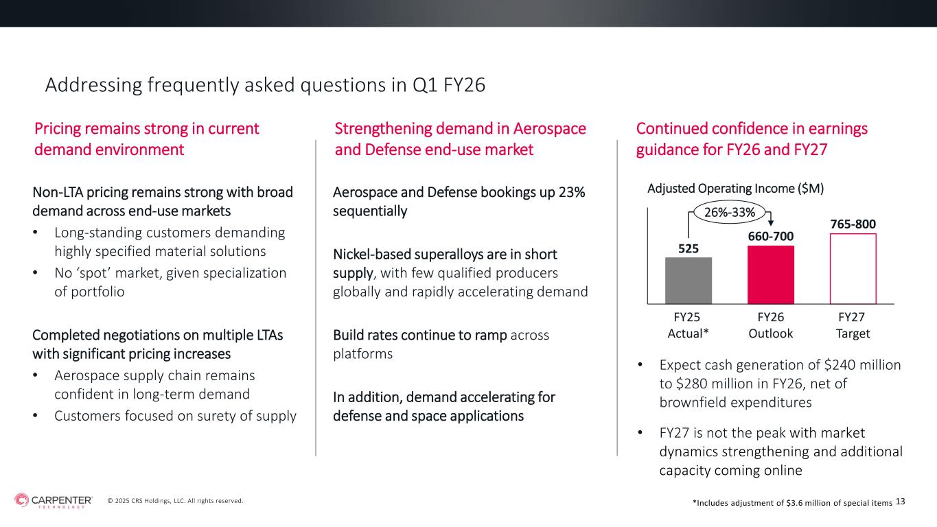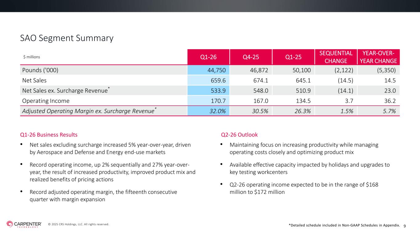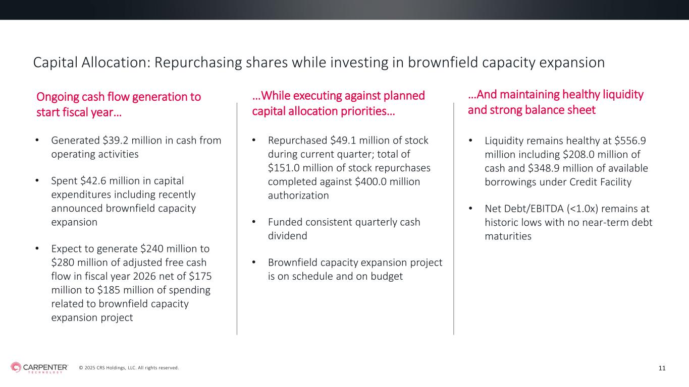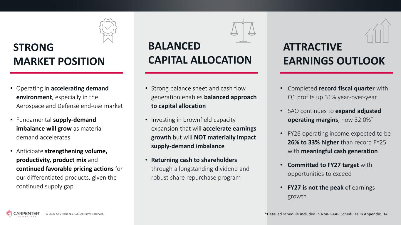 © 2025 CRS Holdings, LLC. All rights reserved. CARPENTER TECHNOLOGY CORPORATION 1st Quarter Fiscal Year 2026 Earnings Call October 23, 2025