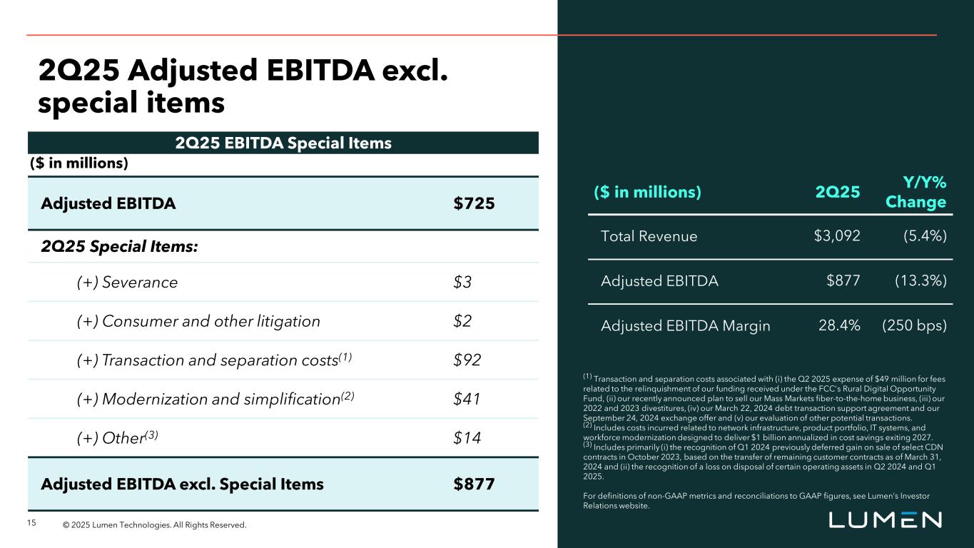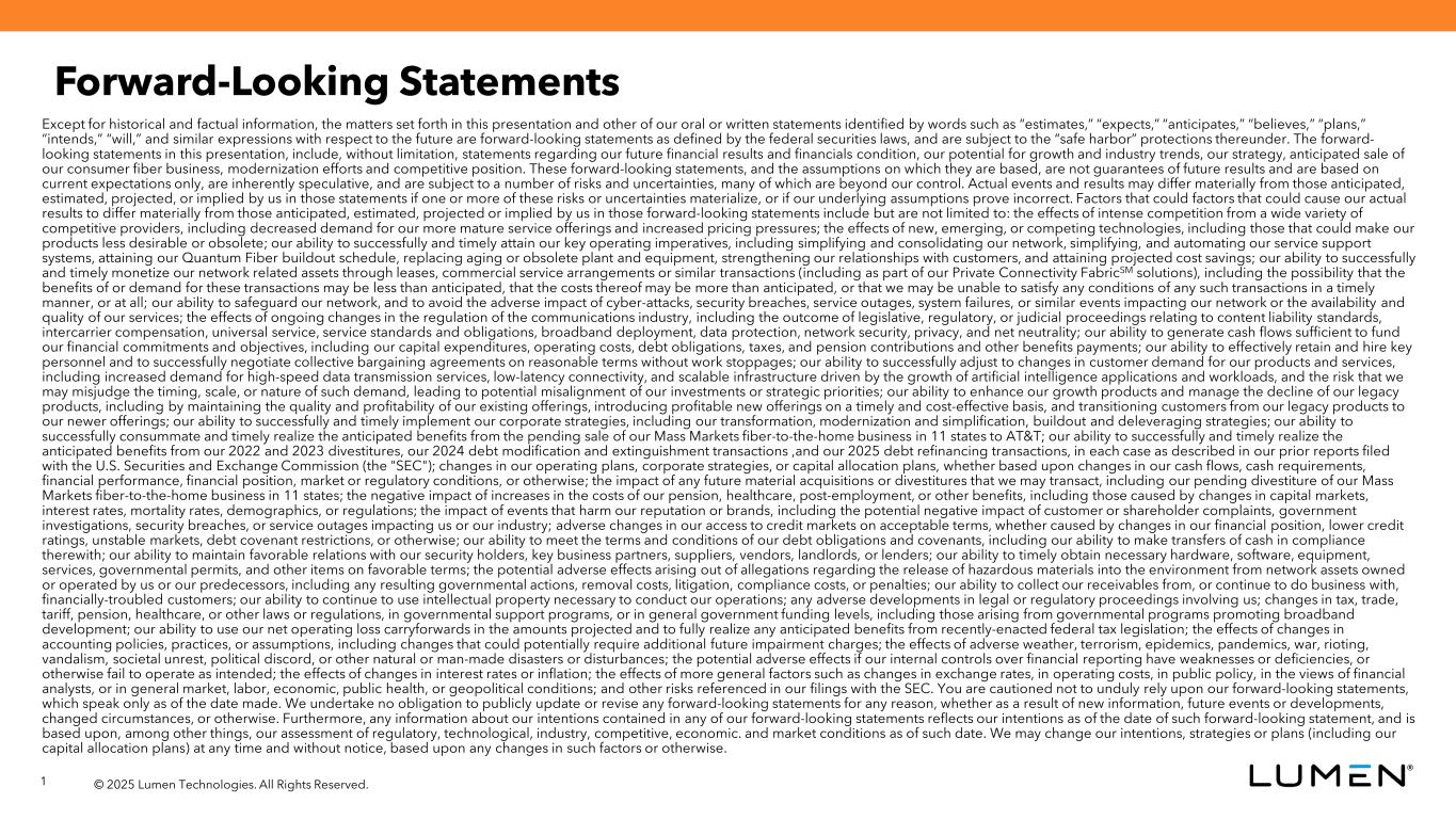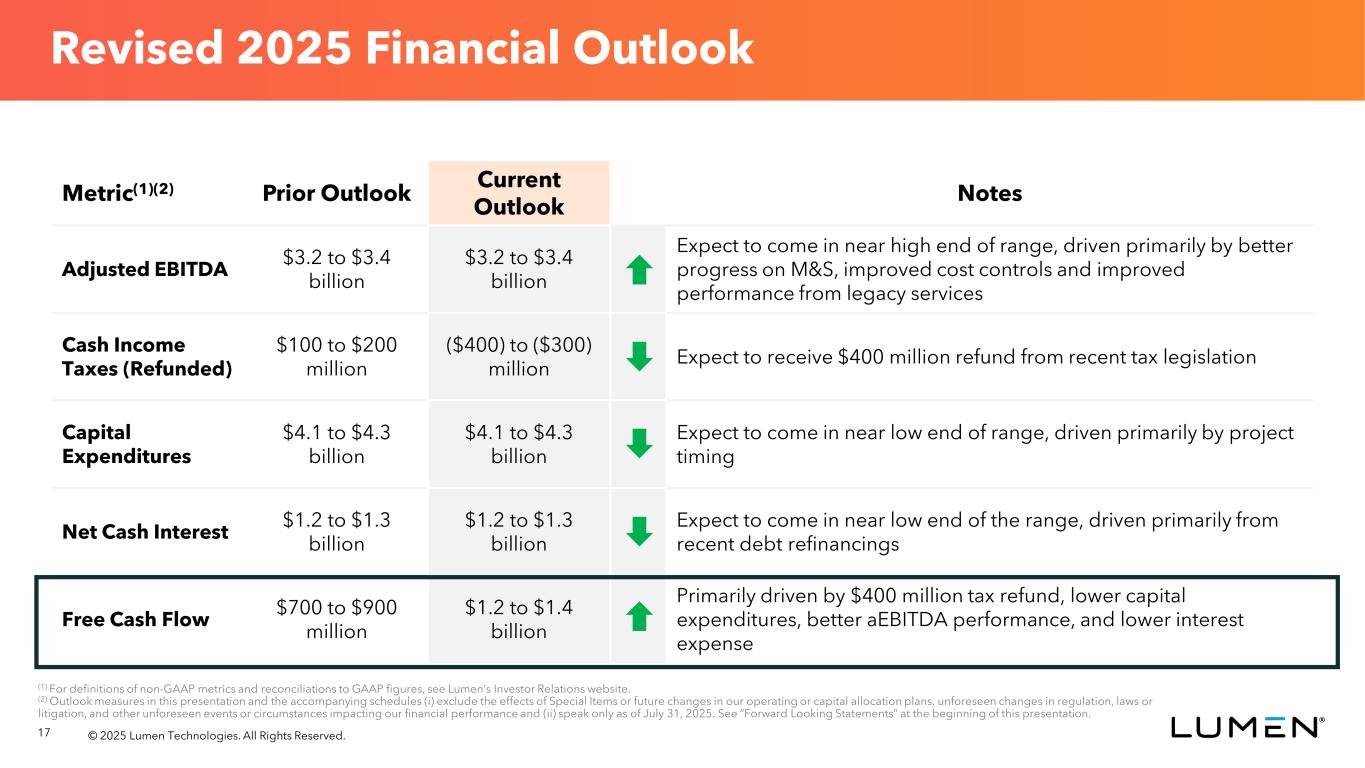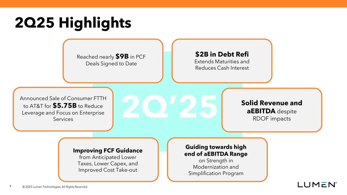 デンバー、2025年7月31日 - ルーメン・テクノロジーズ・インク(NYSE: LUMN)は、2025年6月30日に終了した第2四半期の業績を発表した。