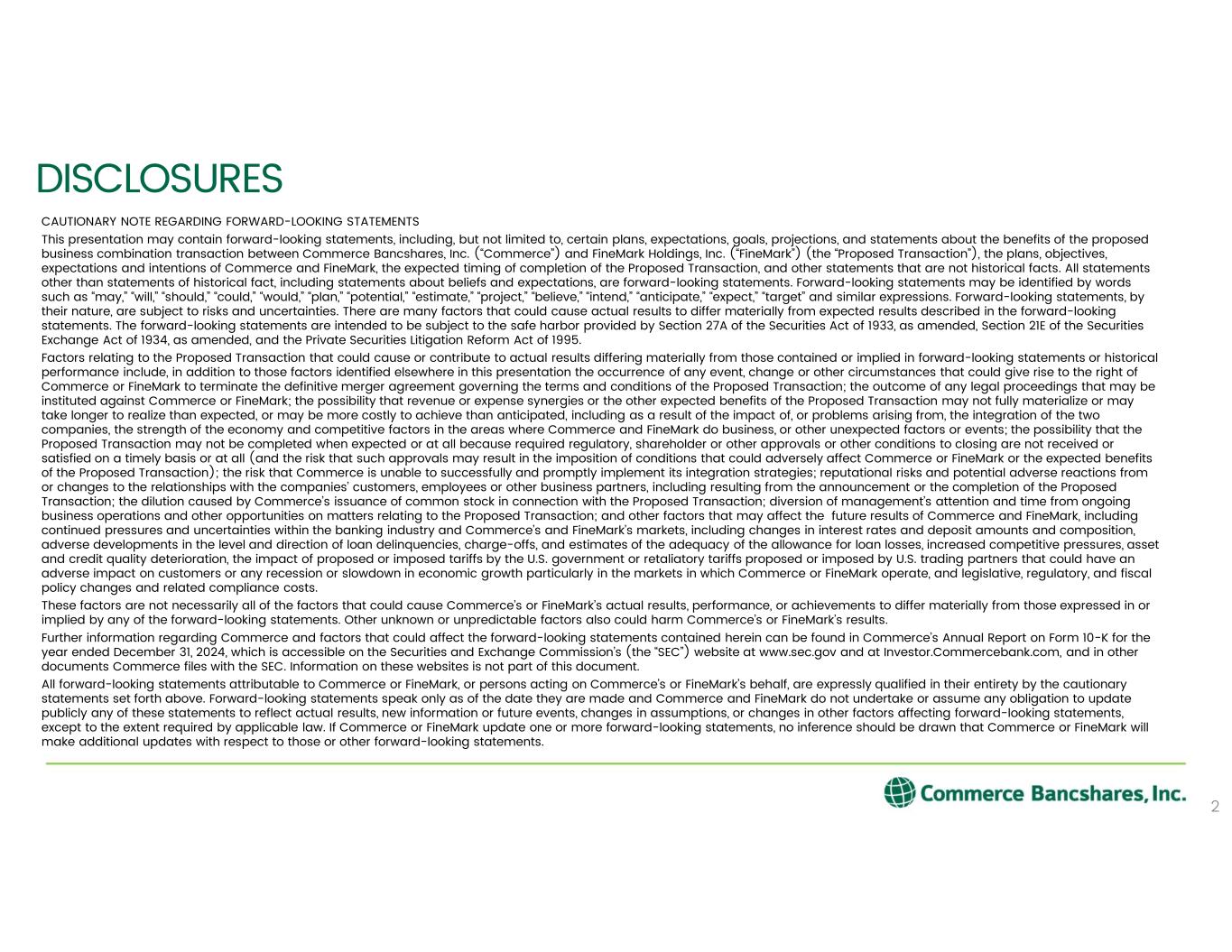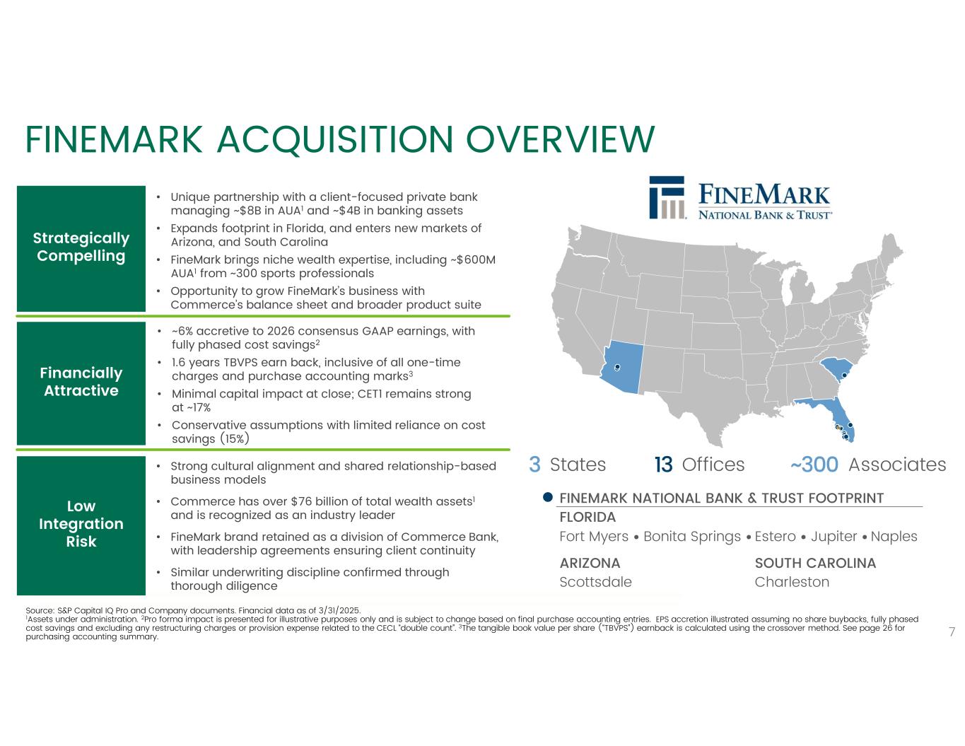 ファインマーク・ホールディングスは、フロリダ州フォートマイヤーズに本社を置く老舗の銀行・信託会社です。この買収により、ファインマークは新たな能力、ニッチな顧客層に対する専門的なサービス、市場範囲の拡大をもたらすでしょう。コマースは、リソース、資本、運営インフラ、規制上の経験、長期的な安定性により、規模と厚みを増すことになる。