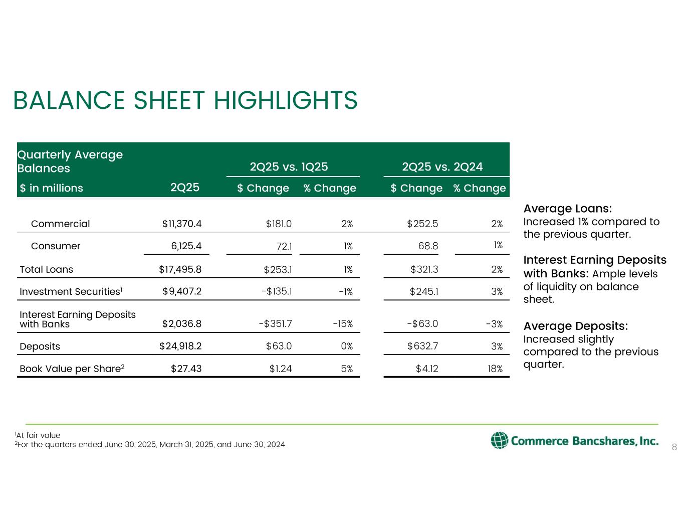 この発表に際し、ジョン・ケンパー最高経営責任者(CEO)は次のように述べた。「コマースは第2四半期に力強い業績を達成しましたが、これは当行の多様な営業モデルとそれを支える有能なチームを反映したものです。当社の業績は、貸出金の伸び、好調な手数料収入、低水準の与信費用、継続的な規律ある経費管理によって支えられており、これらはすべて、長期にわたって着実に利益を伸ばすための重要な要素です。