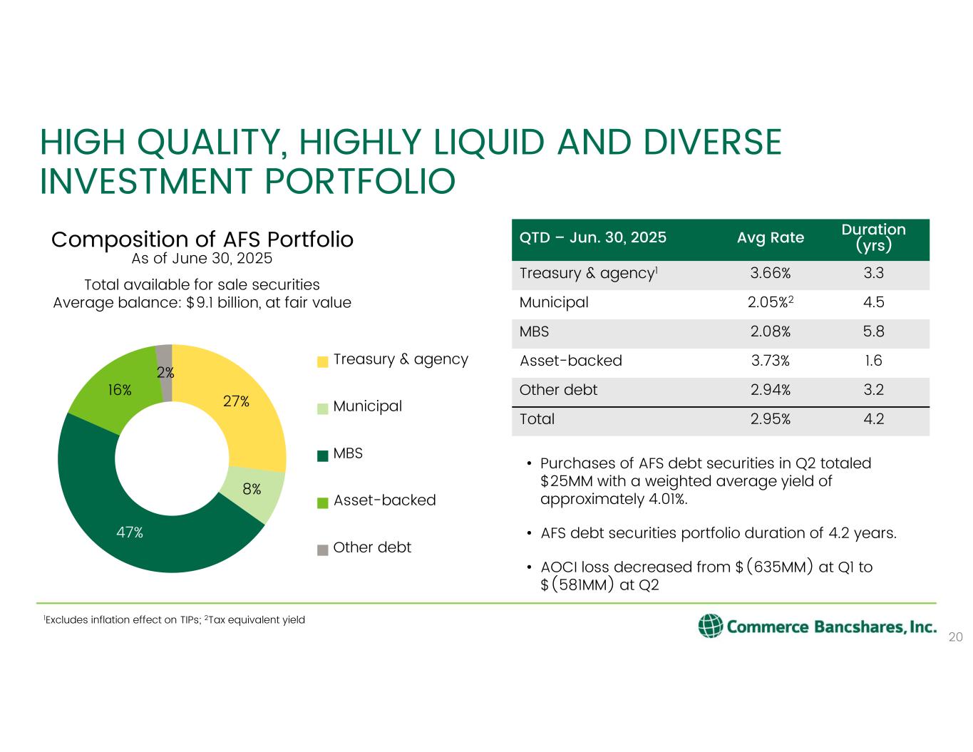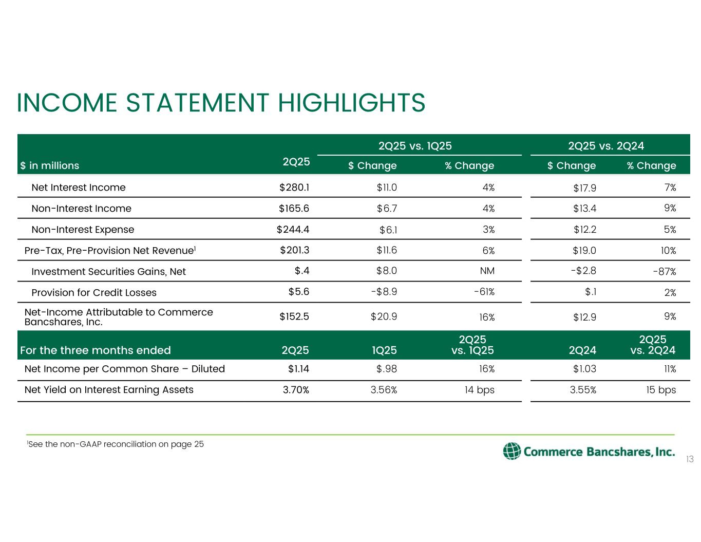 COMMERCE BANCSHARES, INC. REPORTS