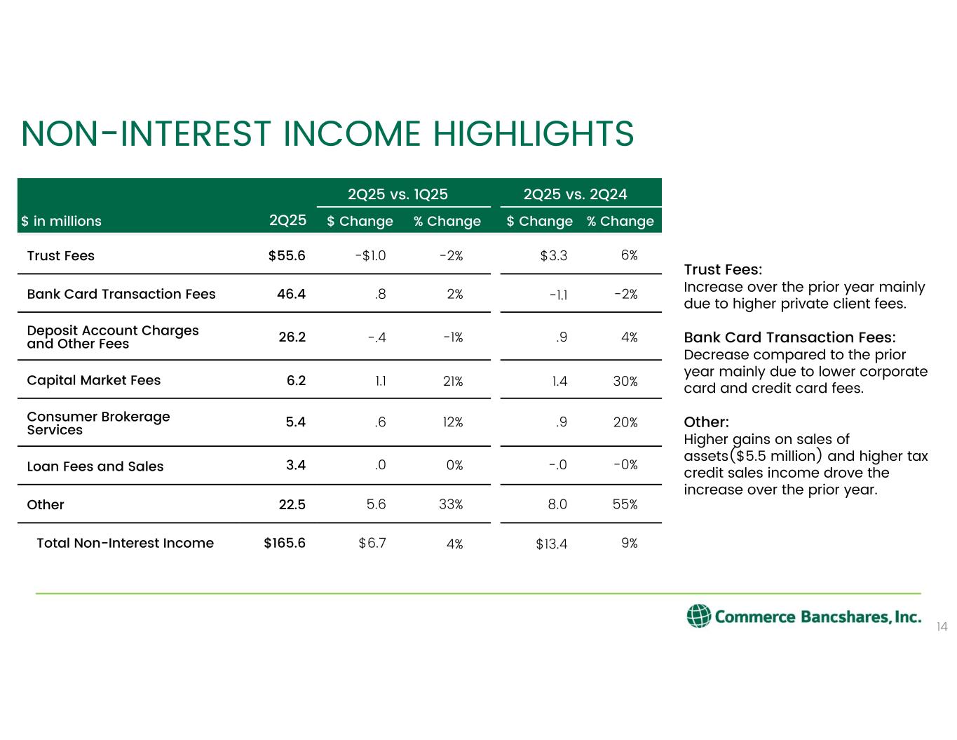 -非金利収入は1億6,560万ドルとなり、前年同期から1,340万ドル(8.8%)増加した。
