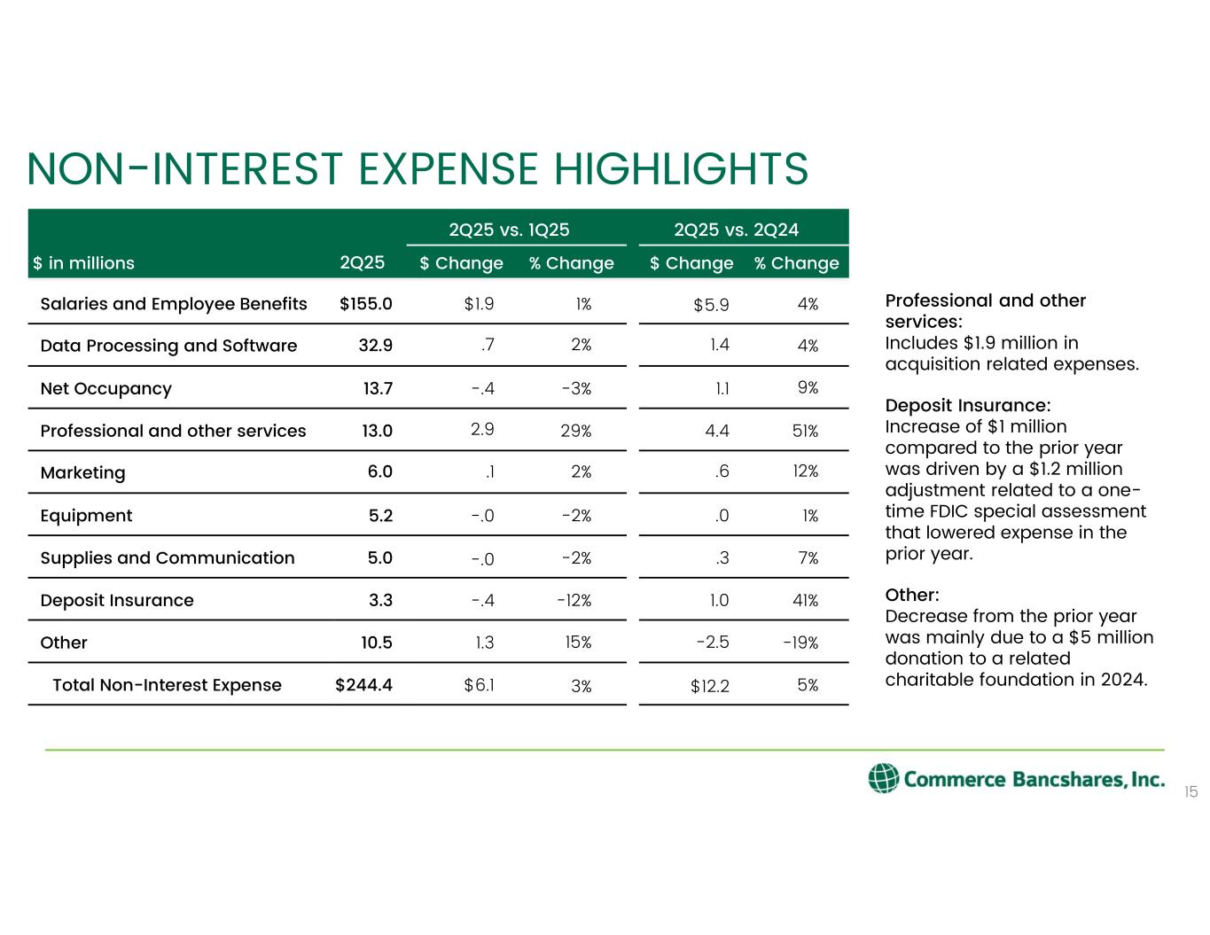-非金利費用は2億4,440万ドルで、前年同期から1,220万ドル(5.3%)増加した。