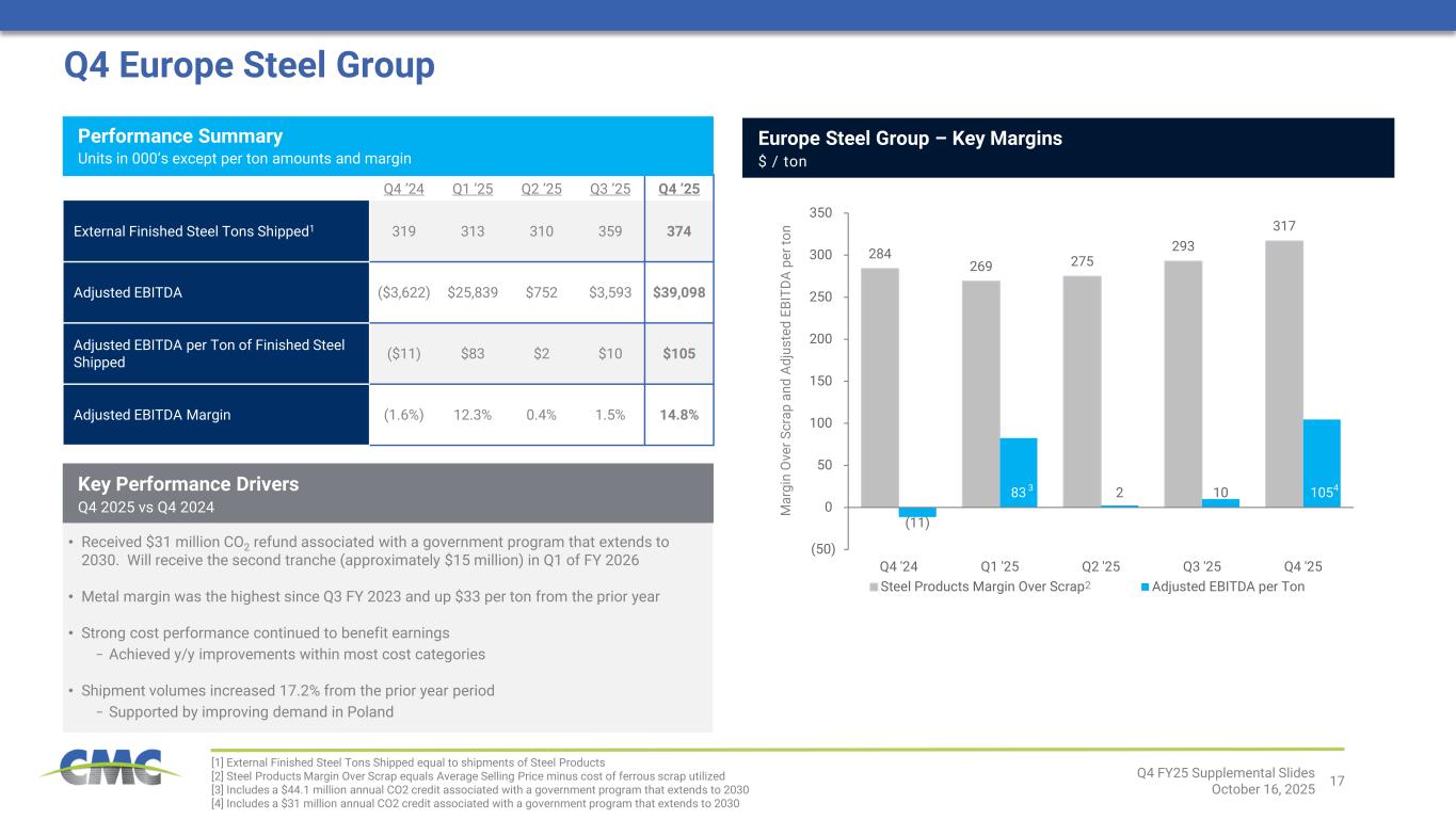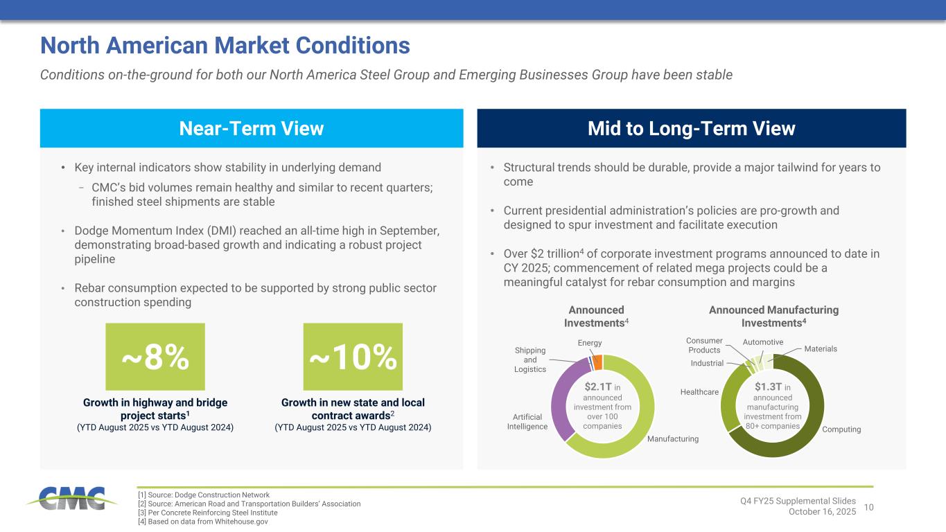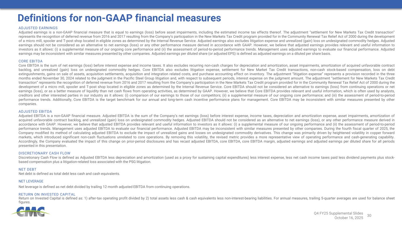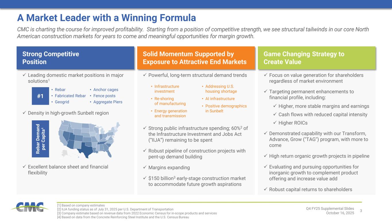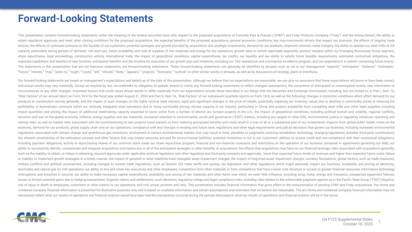 CMCは、本日2025年10月16日(木)午前11時(米国東部時間)より、2025年度第4四半期カンファレンス・コールのライブ放送をお聴きいただけます。ピーター・マット社長兼最高経営責任者、ポール(CMC 2025年度第4四半期 - 5)