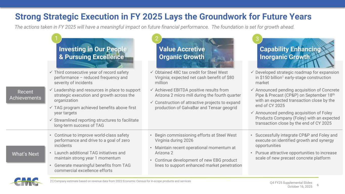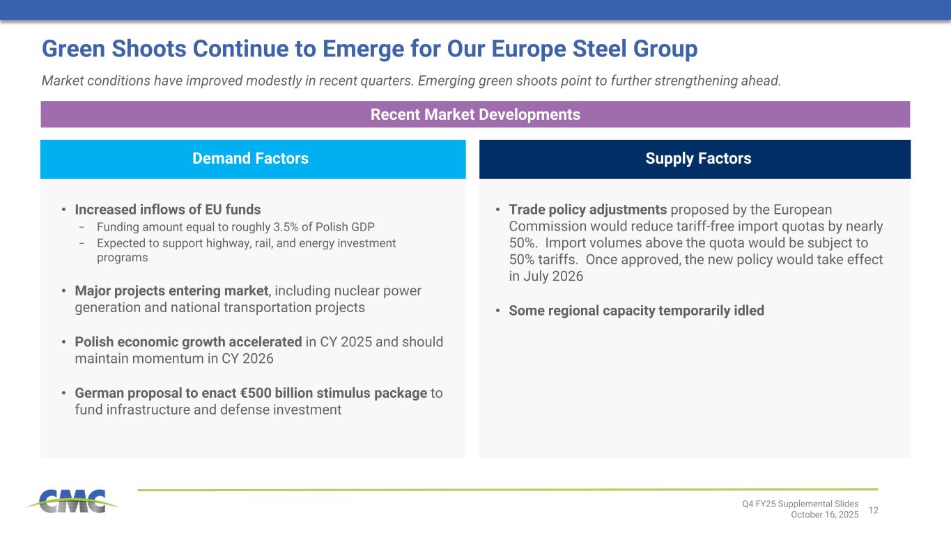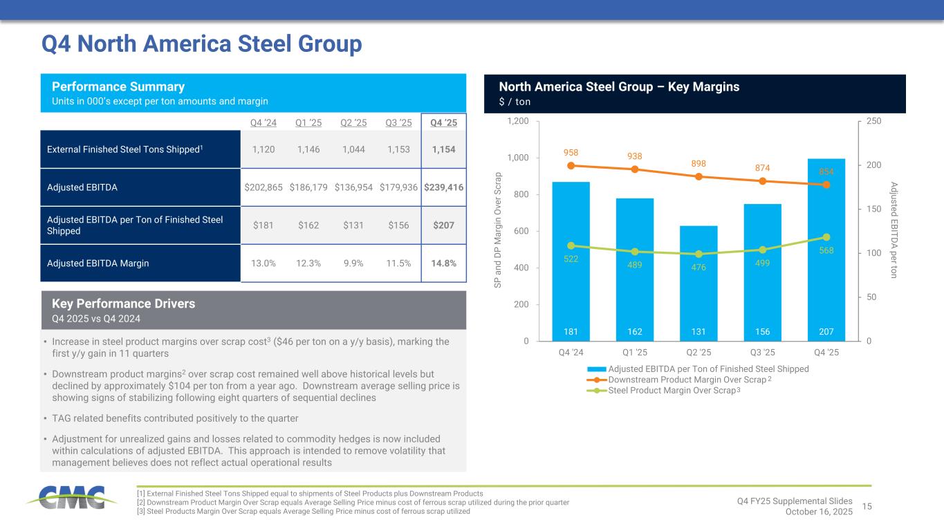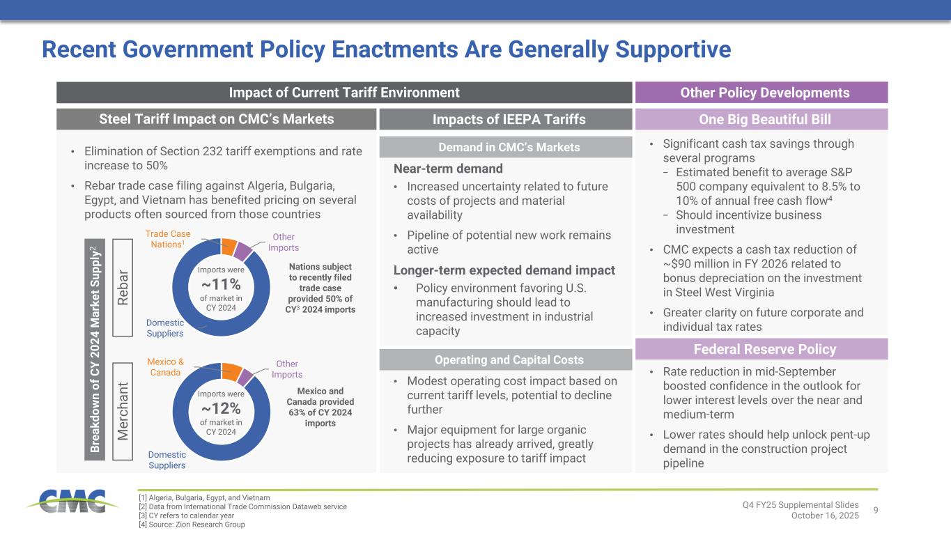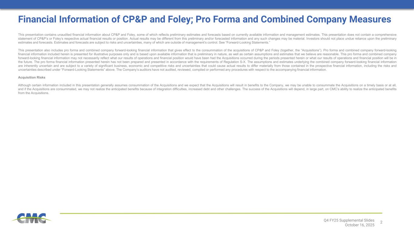 CMCは、本日2025年10月16日(木)午前11時(米国東部時間)より、2025年度第4四半期カンファレンス・コールのライブ放送をお聴きいただけます。ピーター・マット社長兼最高経営責任者、ポール(CMC 2025年度第4四半期 - 5)