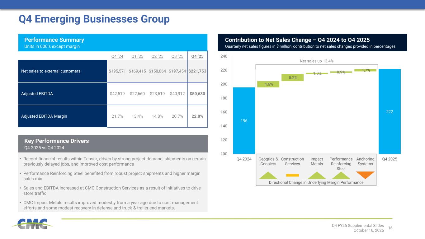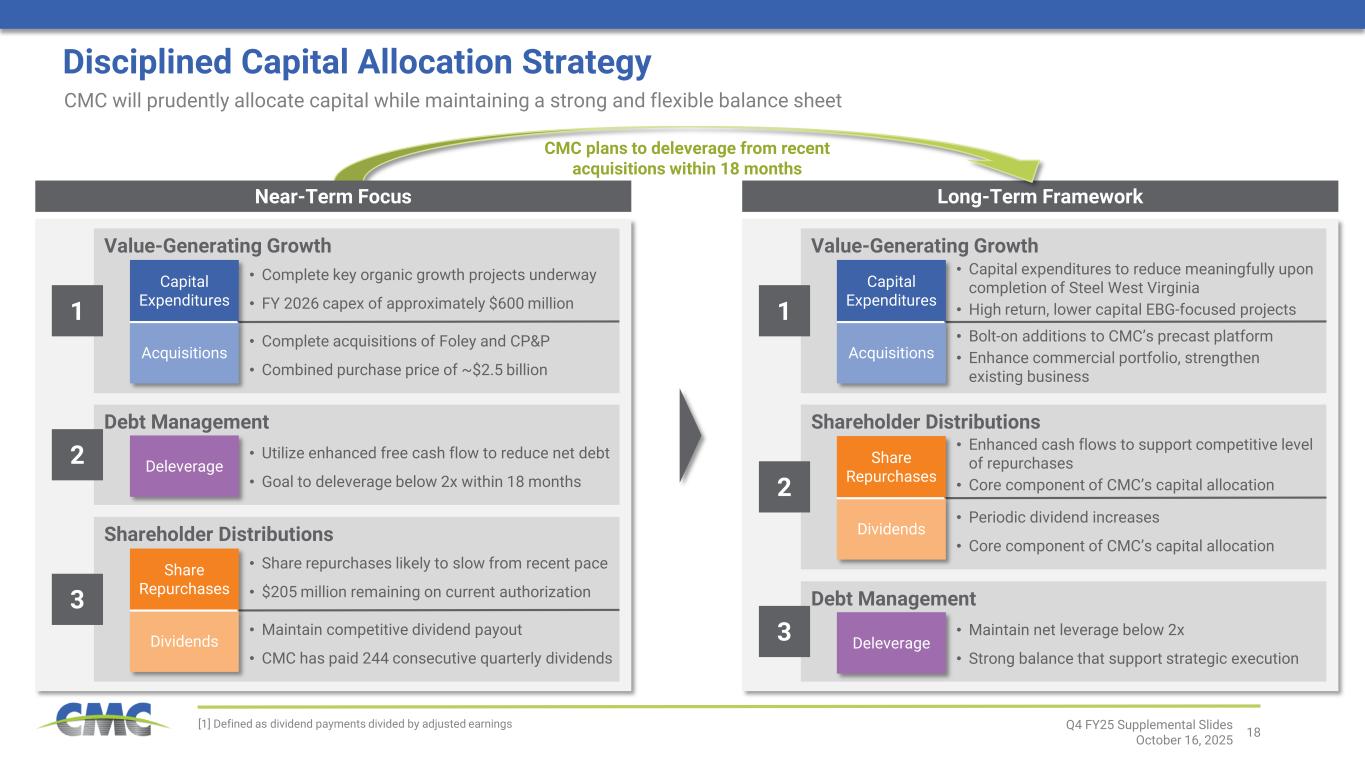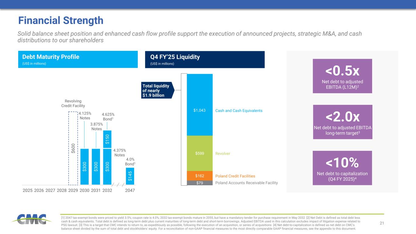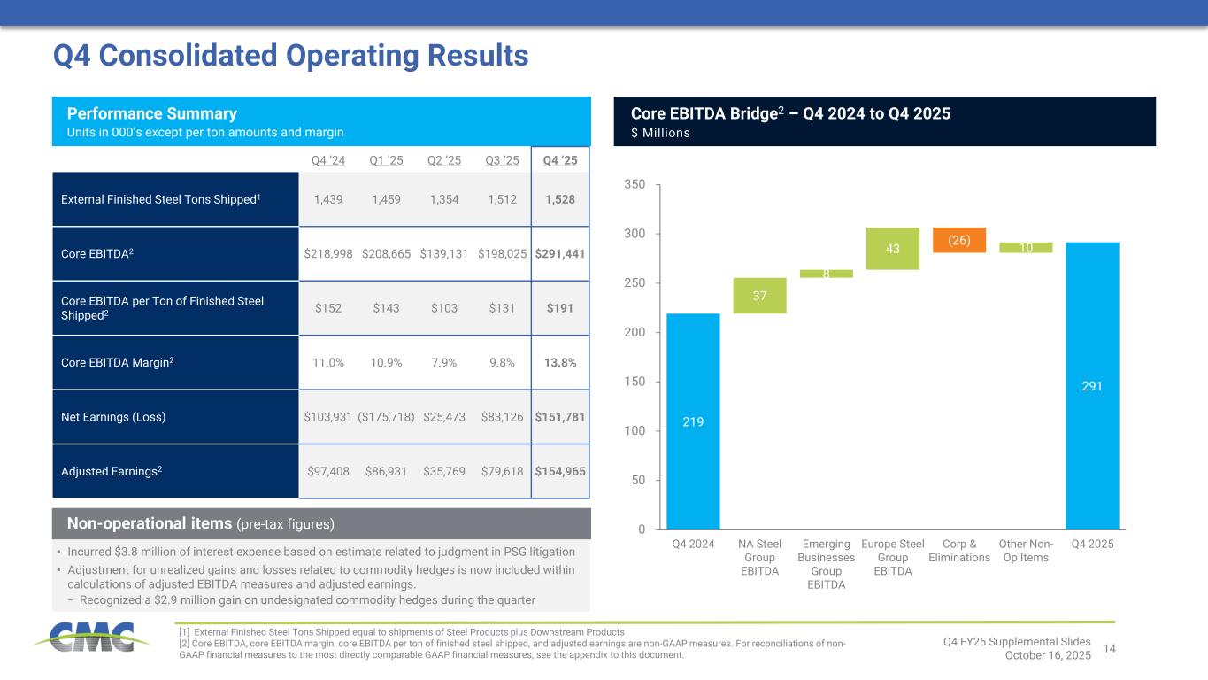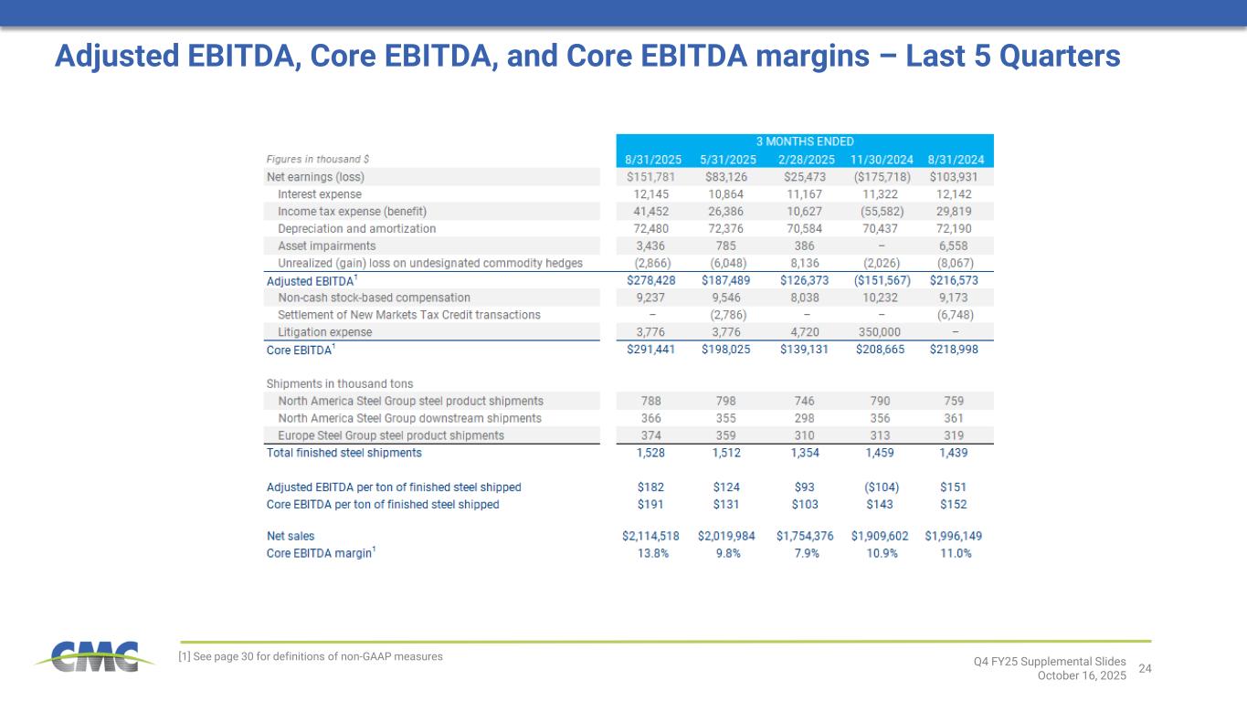 CMCは、本日2025年10月16日(木)午前11時(米国東部時間)より、2025年度第4四半期カンファレンス・コールのライブ放送をお聴きいただけます。ピーター・マット社長兼最高経営責任者、ポール(CMC 2025年度第4四半期 - 5)