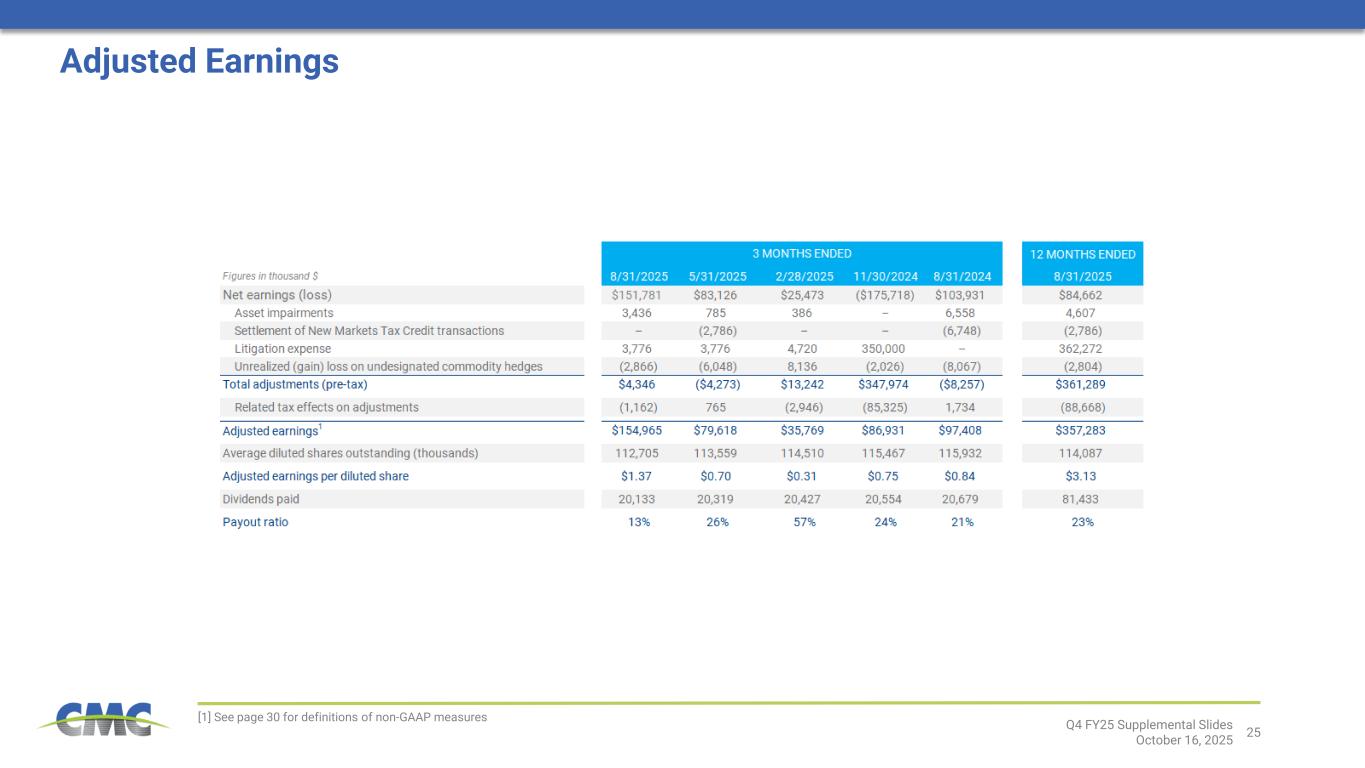 EX-99.1 2 cmc-08312025xearningsreleaa.htm EX-99.1 Document