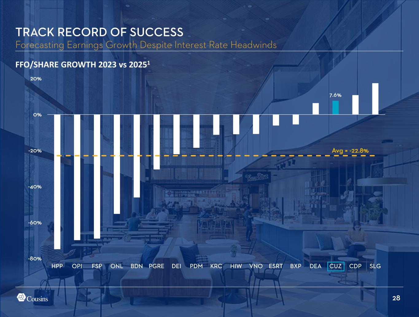 28 7.6% -80% -60% -40% -20% 0% 20% HPP OPI FSP ONL BDN PGRE DEI PDM KRC HIW VNO ESRT BXP DEA CUZ CDP SLG FFO/SHARE GROWTH 2023 vs 20251 TRACK RECORD OF SUCCESS Forecasting Earnings Growth Despite Interest Rate Headwinds Avg = -22.8%