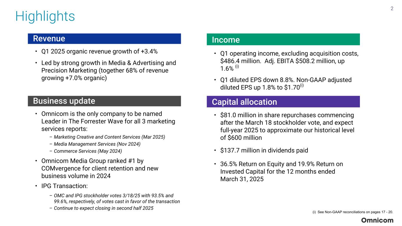 OMNICOM REPORTS FIRST QUARTER 2025 RESULTS