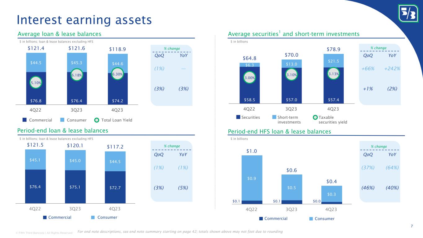 売却予定のローンおよびリースの平均は、前四半期の 6 億ドル、前年同期の 15 億ドルに対し、当四半期は 5 億ドルとなりました。