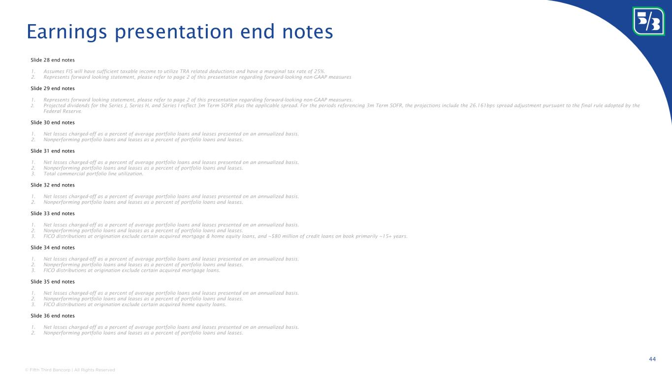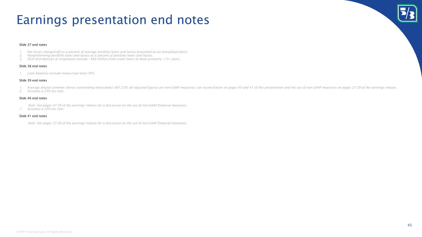 14ページ以降の四半期財務レビューの表以外では、特に断りのない限り、コメントは完全課税相当額(fte)ベースで記載されています。非課税所得を課税所得と同等に計算することを想定しているsecのレギュレーションs-kのガイダンスに従い、純利息収益、純利鞘、純金利スプレッド、総収入および効率比率は、fteベースで表示しています。 |