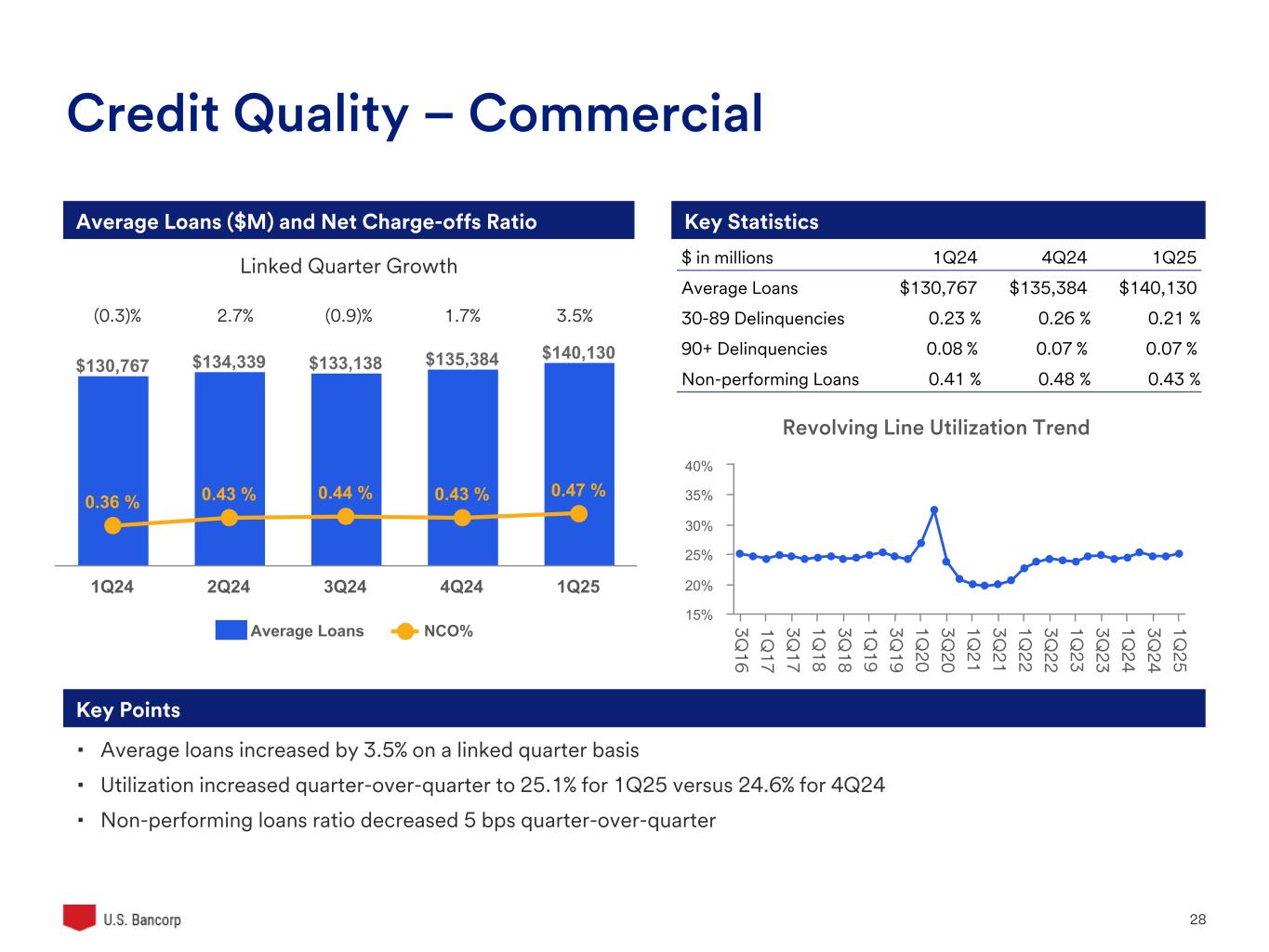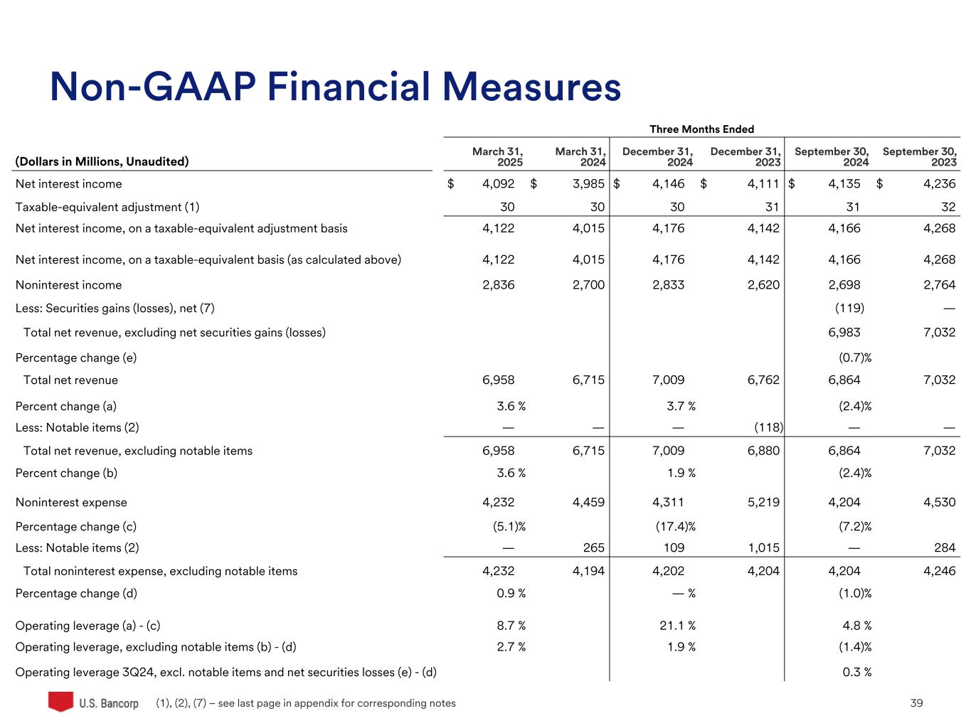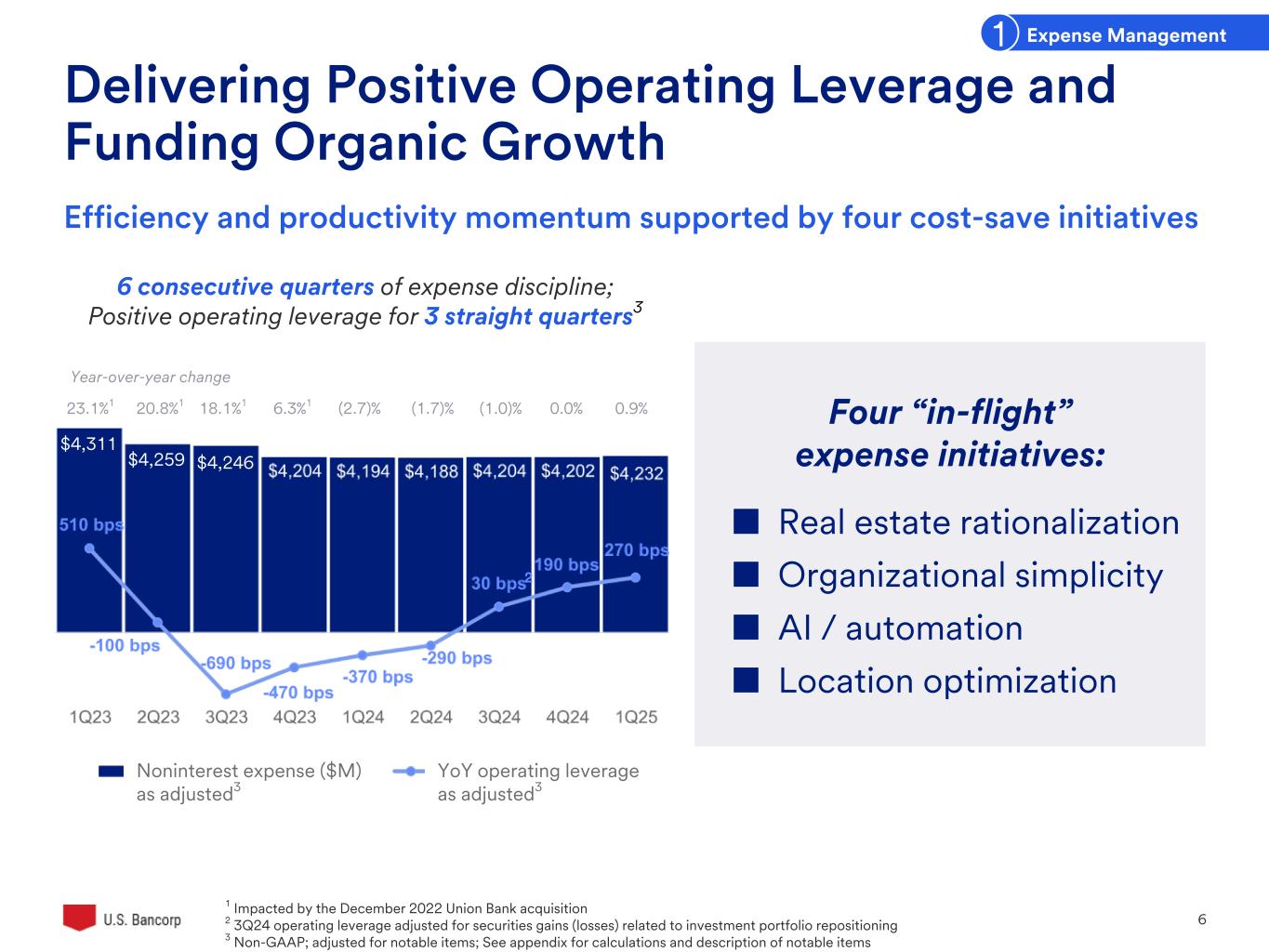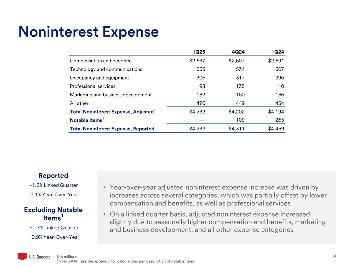 •Noninterest expense increase of 0.9% on a year-over-year basis and 0.7% on a linked quarter basis, as adjusted for notable items in the prior quarters