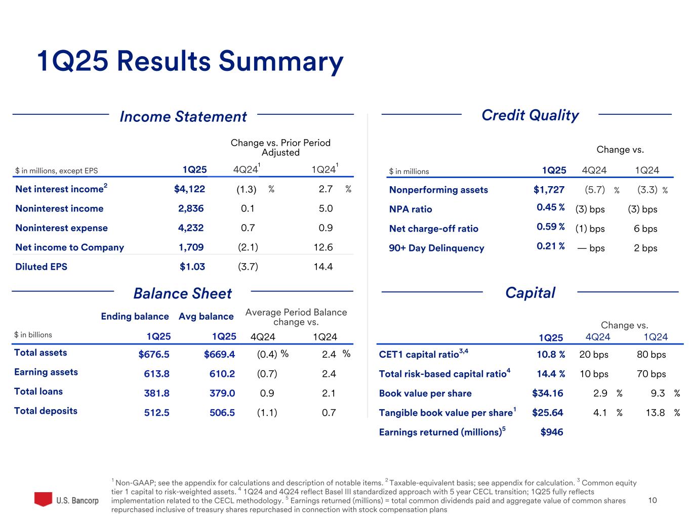 •CET1 capital ratio of 10.8% at March 31, 2025, compared with 10.6% at December 31, 2024