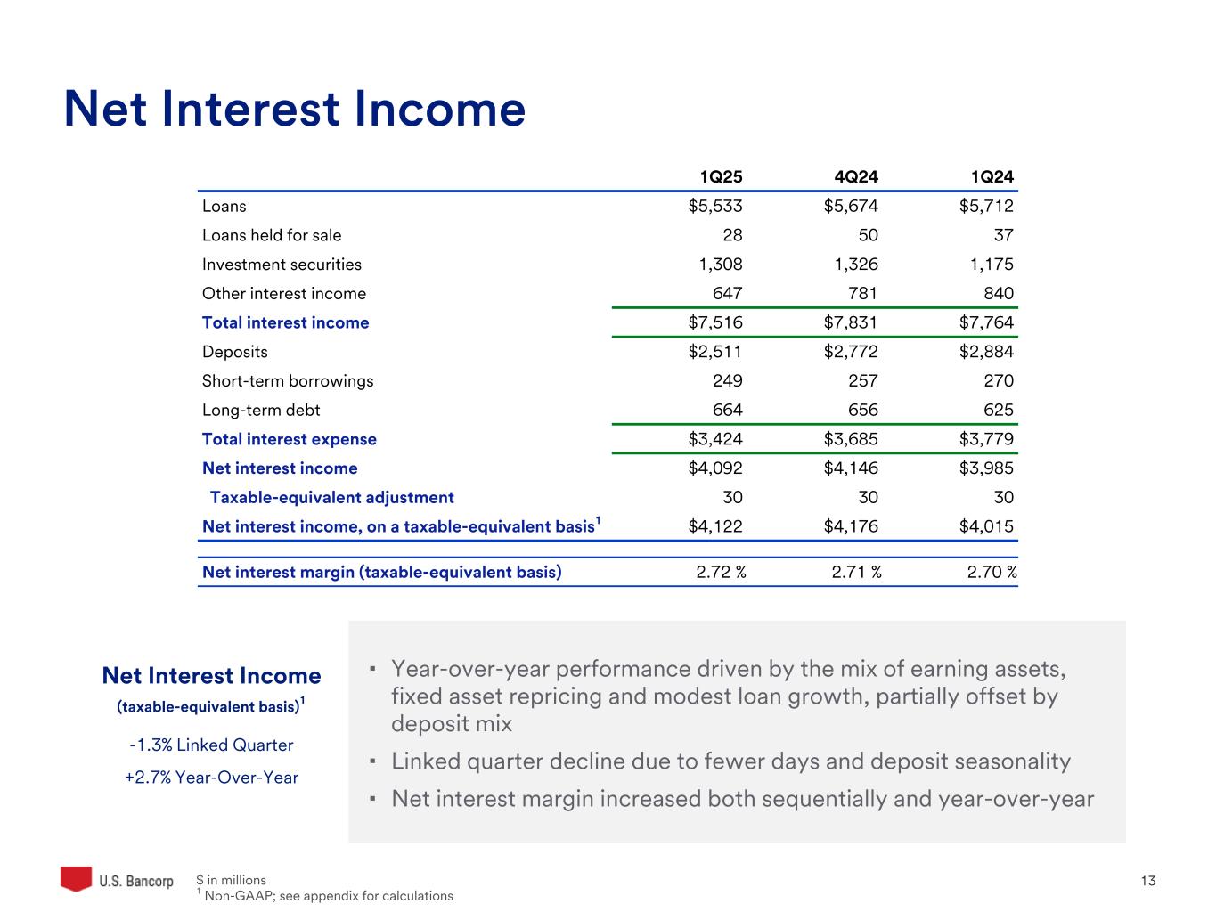 | Net interest income | $4,092 | $4,146 | $3,985 | (1.3) | 2.7 | $4,092 | $4,146 | $3,985 | (1.3) | 2.7 | ||||||||||||||||||||||||||||
