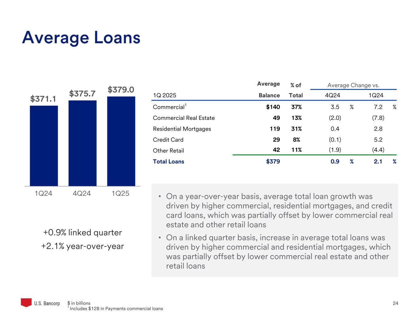 •Average total loans increased 2.1% on a year-over-year basis and 0.9% on a linked quarter basis