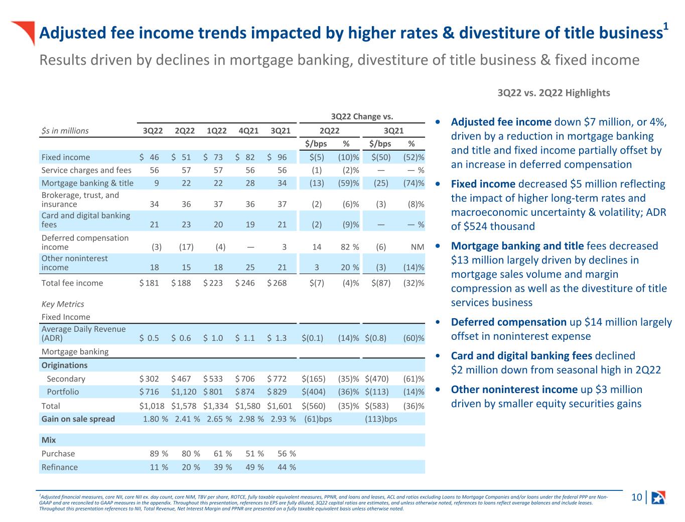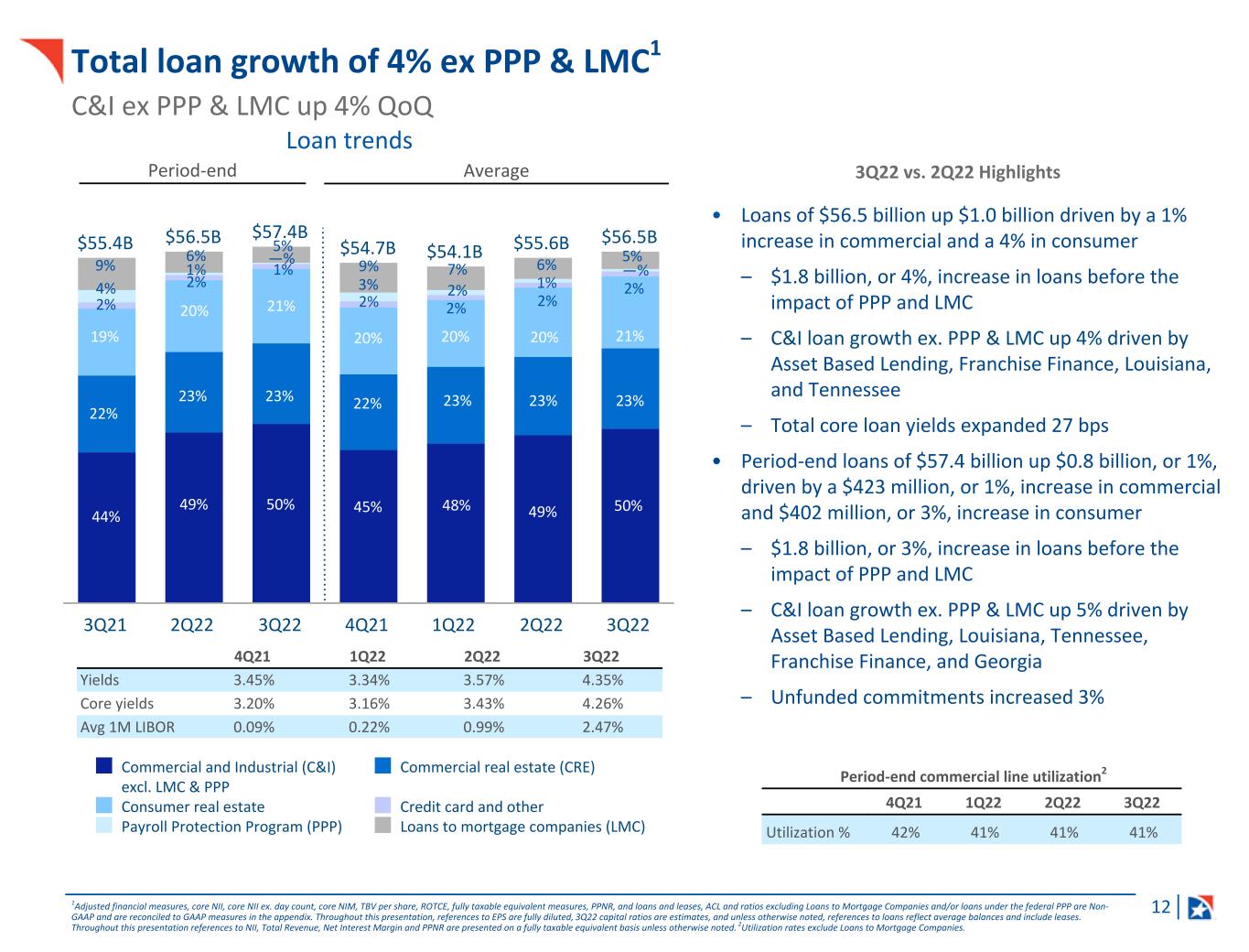 -2022年第3四半期の正味償却額は1200万ドルと比較的安定しており、不良債権はリンク先で3%減少し、不良債権比率は0.51%と0.53%から改善しました。