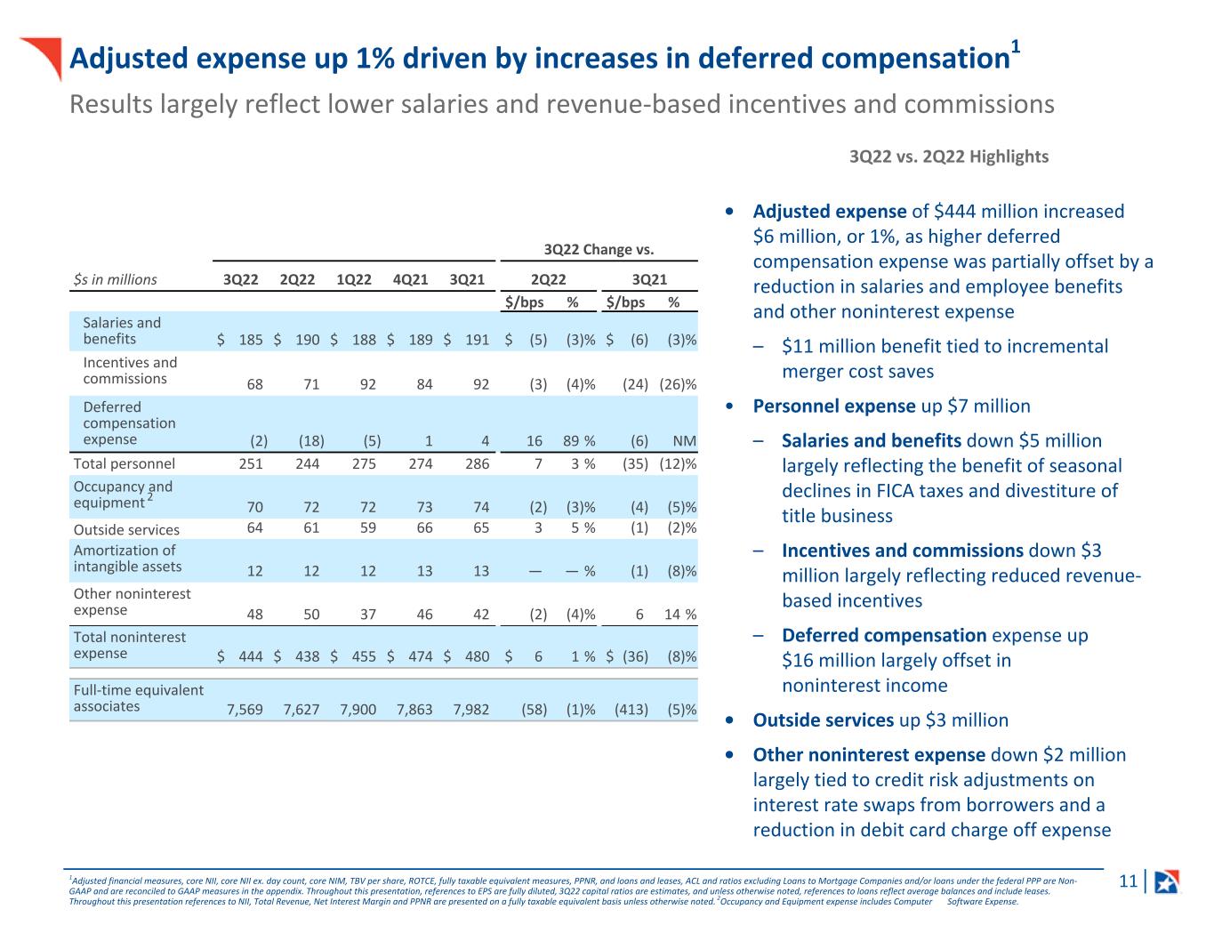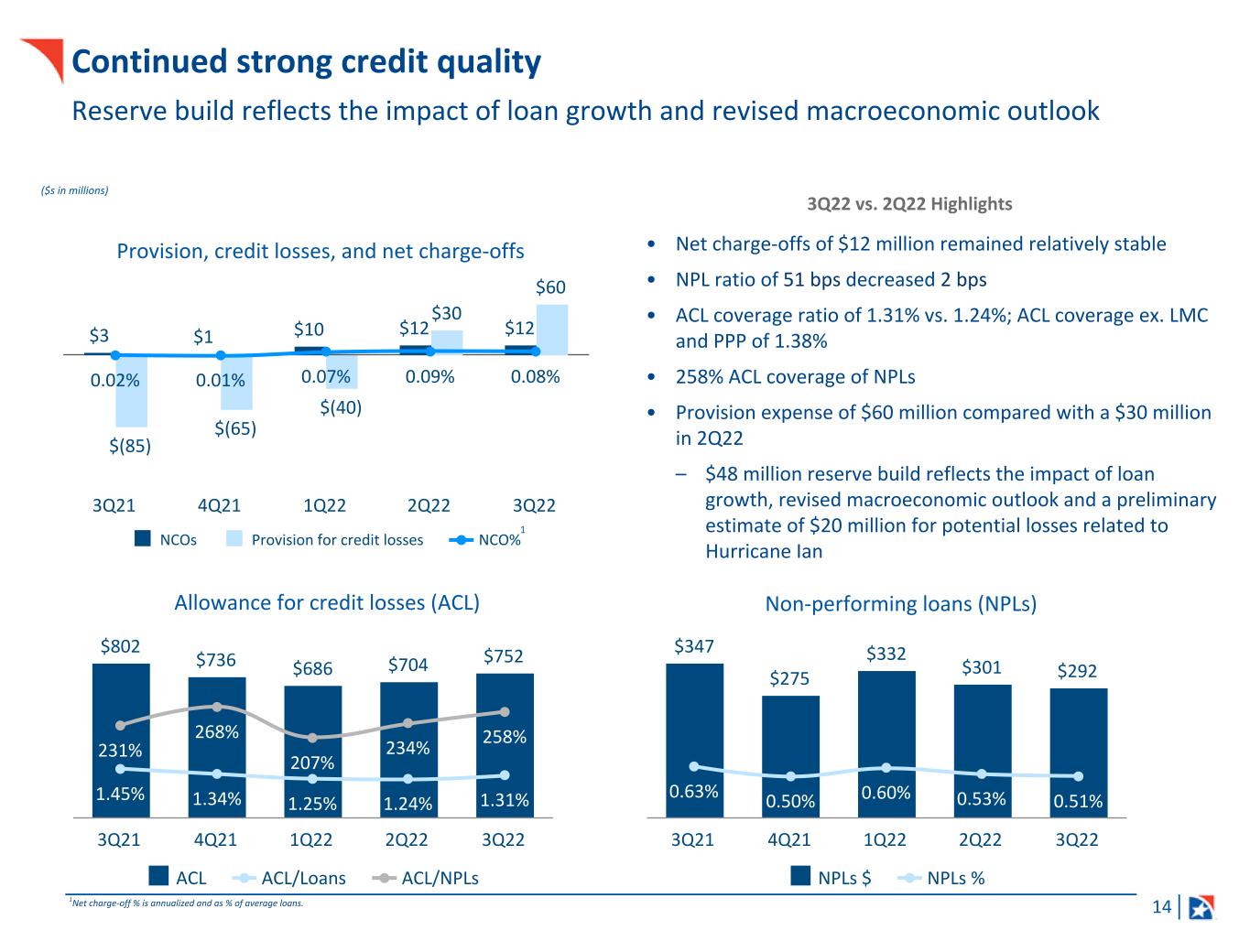 -引当金繰入額は、貸付金の増加、マクロ経済見通しの修正、ハリケーン「イアン」に関連する潜在的損失の予備評価額2,000万ドルの影響を反映して、2022年第2四半期の3,000万ドルに対し、6,000万ドルとなりました。