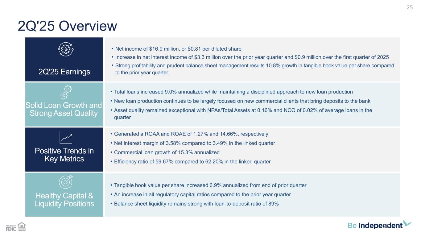 Second Quarter 2025 Results (NASDAQ: IBCP)