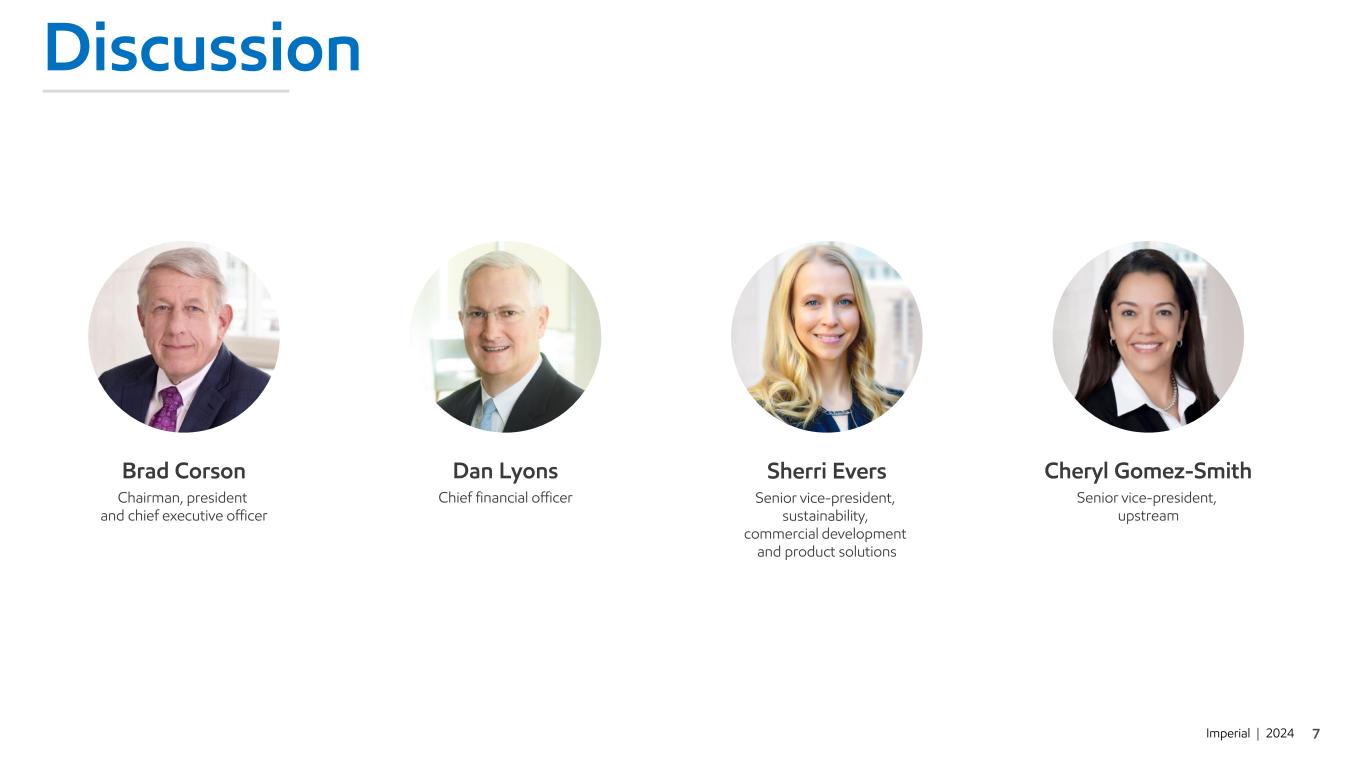 Forward-looking and other statements regarding Imperial's environmental, social and other sustainability efforts and aspirations are not an indication that these statements are material to investors or require disclosure in the company's filings with securities regulators. In addition, historical, current and forward-looking environmental, social and sustainability-related statements may be based on standards for measuring progress that are still developing, internal controls and processes that continue to evolve, and assumptions that are subject to change in the future, including future rule-making. Individual projects or opportunities may advance based on a number of factors, including availability of supportive policy, technology for cost-effective abatement, company planning process, and alignment with our partners and other stakeholders.