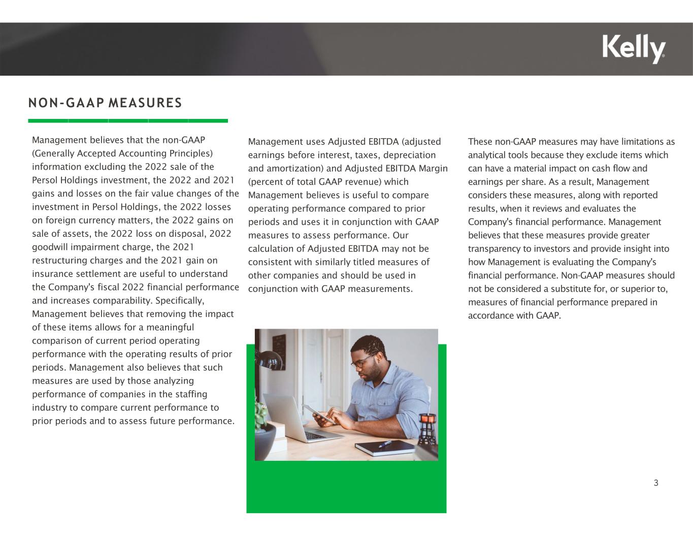 カンファレンス・コールの録音は、2023年2月16日午後2時30分(米国東部時間)以降、(866) 207-1041(フリーダイヤル)または(402) 970-0847(通話料着払い)でお聞きいただくことができます。アクセスコードは「1472042#」です。また、この期間中はkellyservices.comでも録音を視聴することができます。