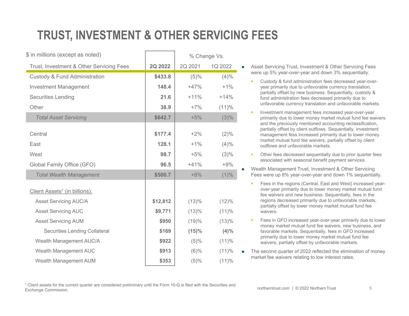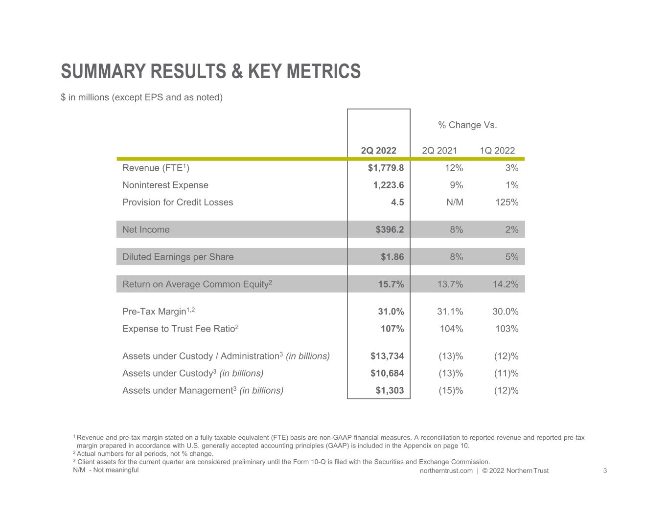 NORTHERN TRUST CORPORATION SECOND QUARTER 2022 RESULTS | ||