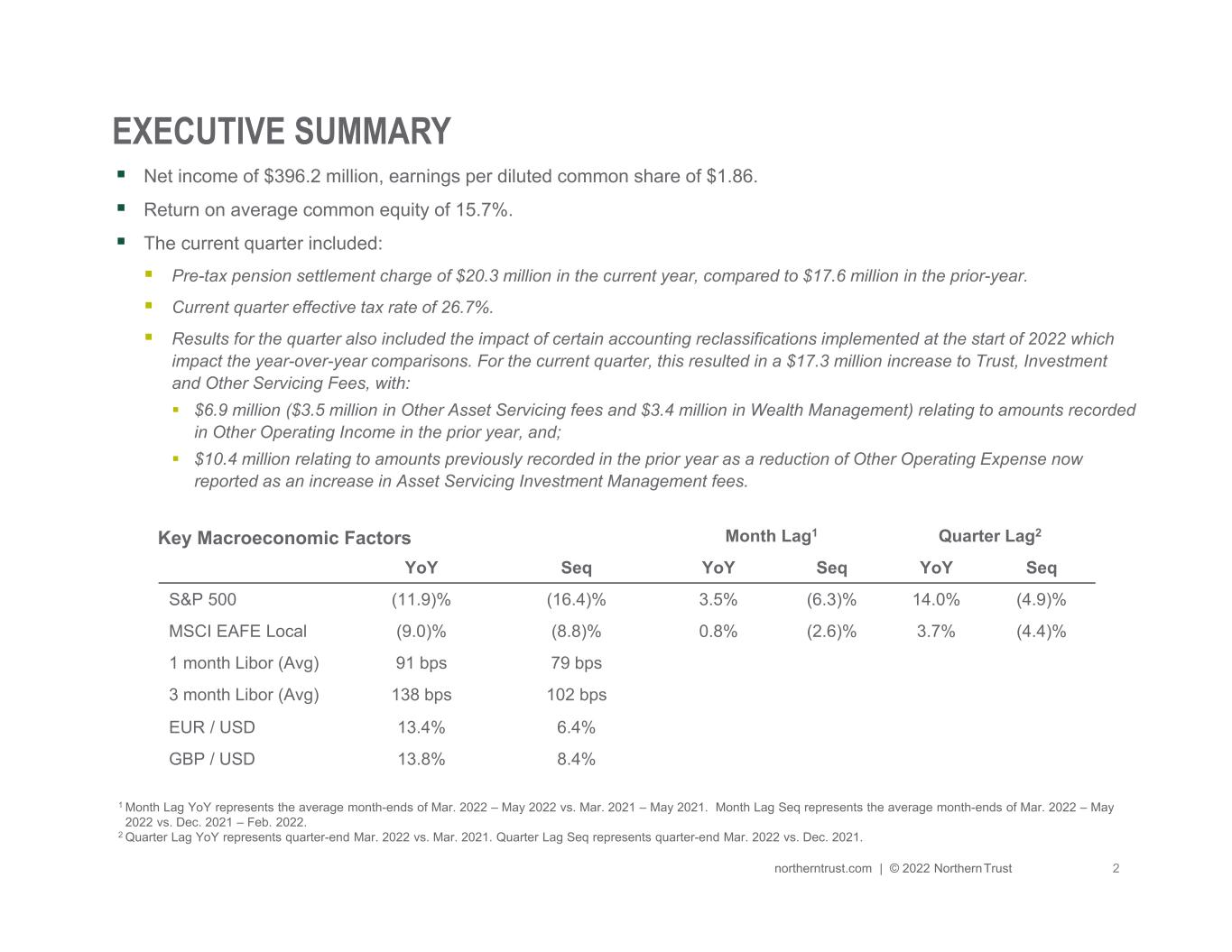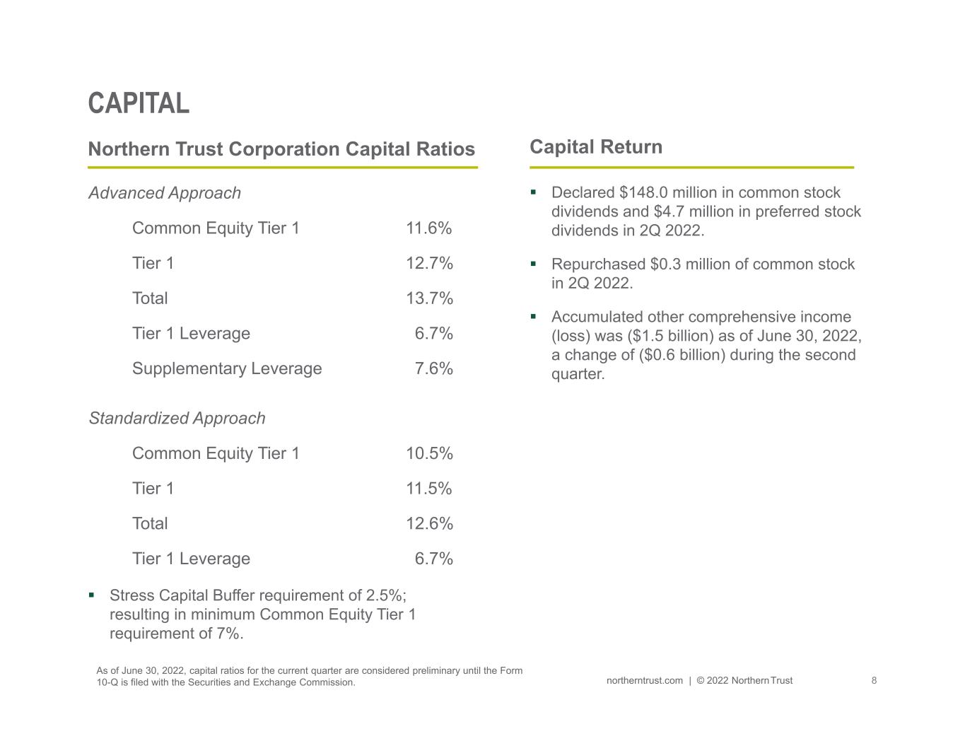 | ノーザン トラスト コーポレーション 2022年第2四半期決算 |