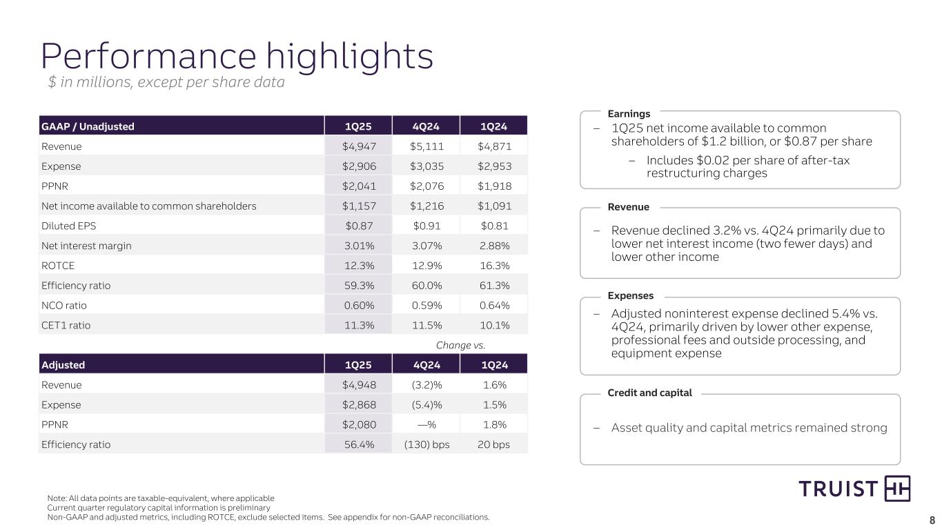 1Q25 Performance Highlights(4) |