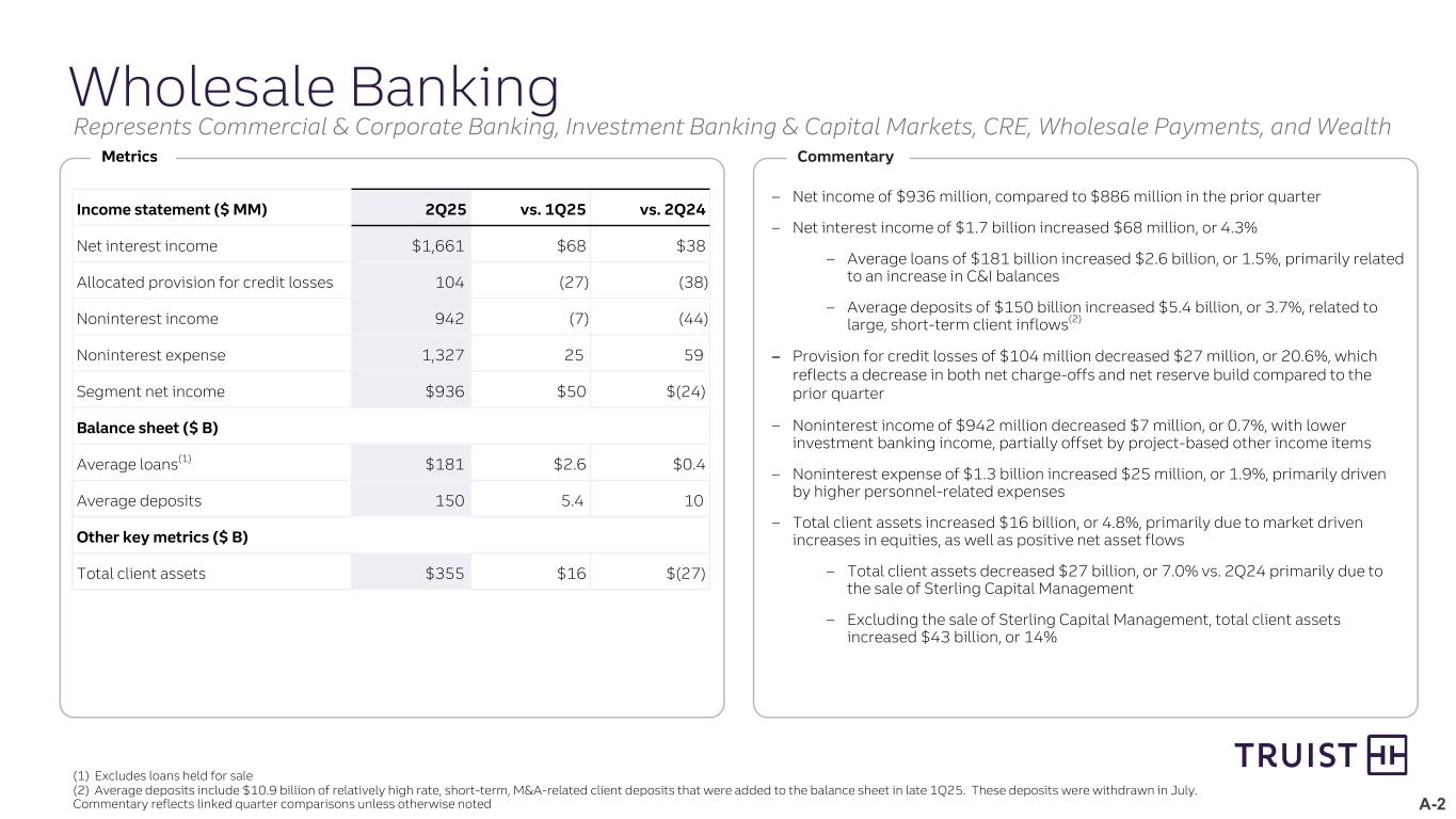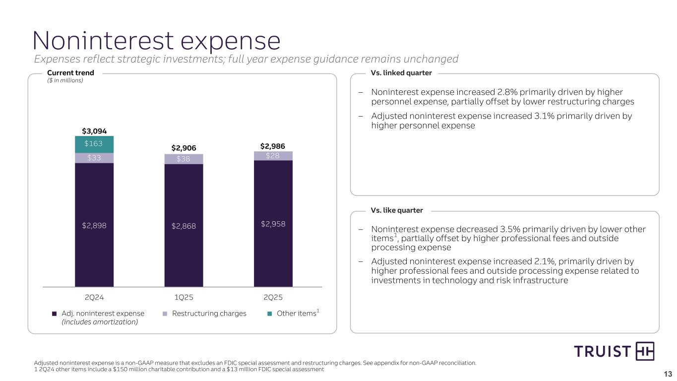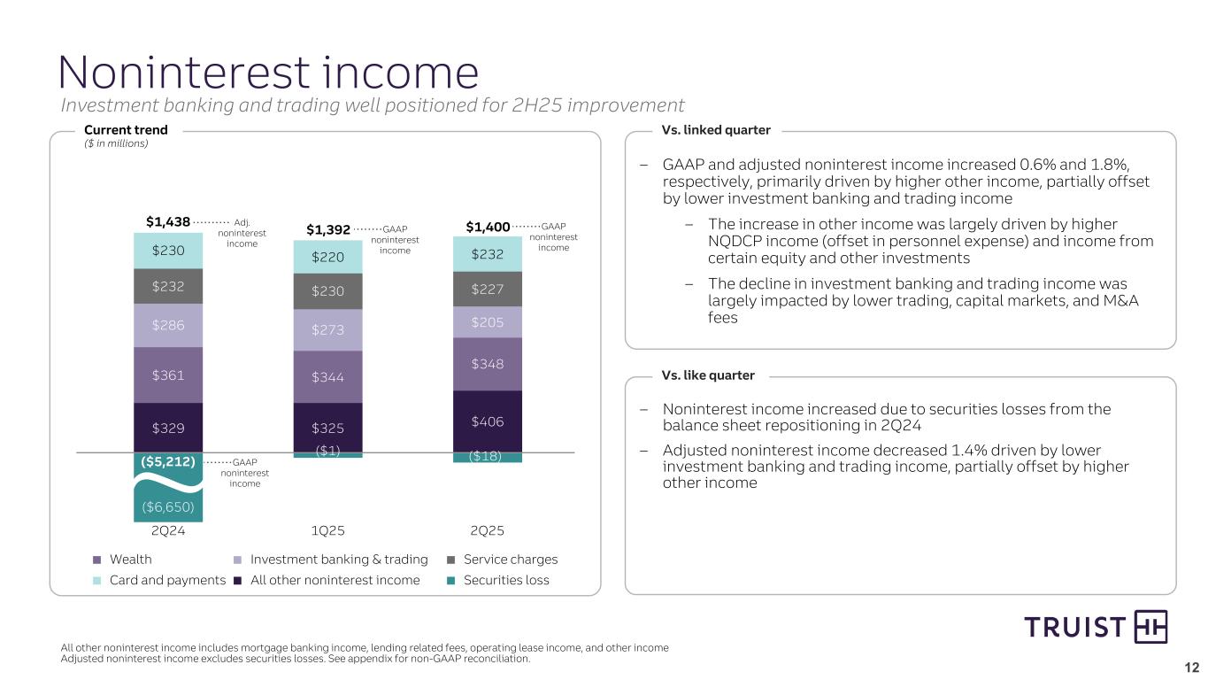 非金利収入は、主にその他の収入の増加により、前年同期から 800 万ドル(0.6%)増加しましたが、 投資銀行業務およびトレーディング収入の減少により相殺されました。有価証券損失を除くと、非金利収入は前年同期から 2,500 万ドル(1.8%)増加しました。