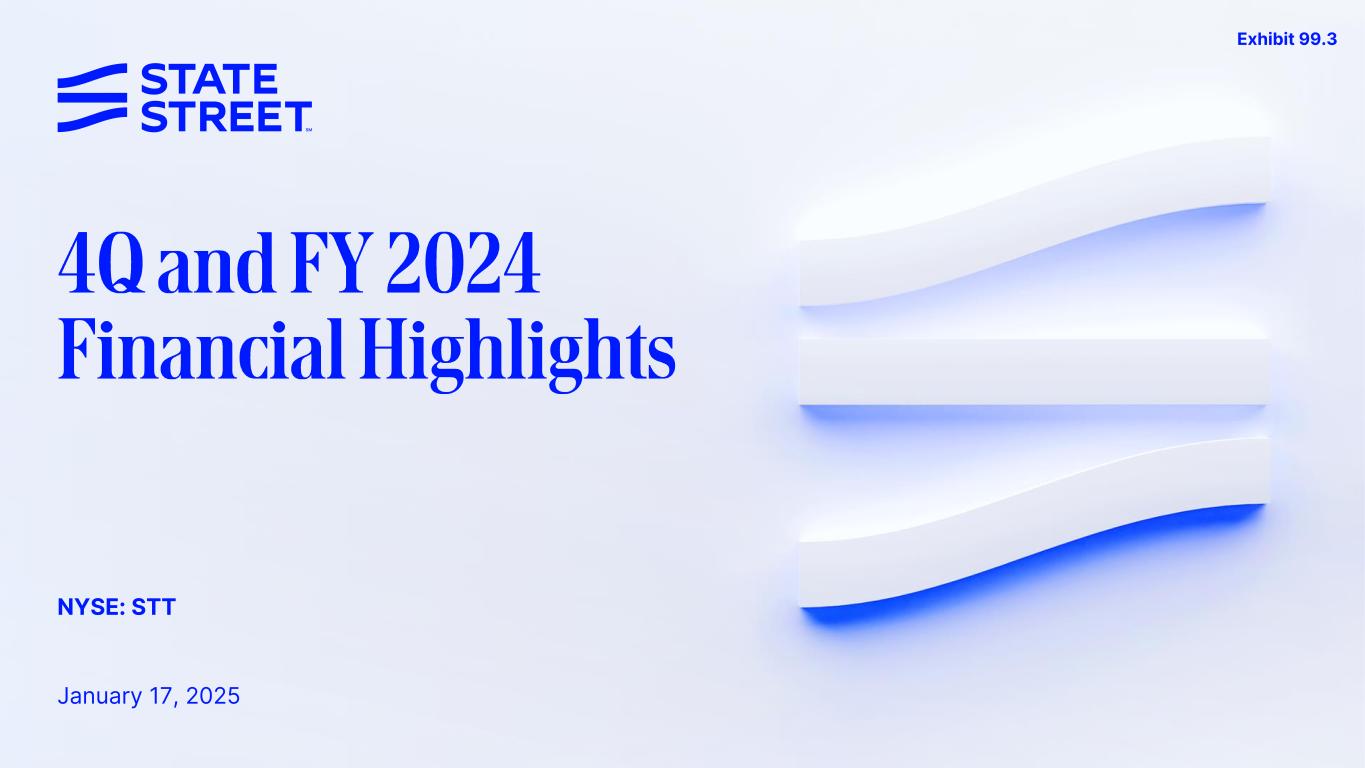 | 会長兼最高経営責任者 ロン・オハンリー「2024年はステート・ストリートにとって重要な年となりました。当社は、営業モデルの変革、能力の強化、顧客サポートの継続を図りながら、手数料収益の成長率を高めるという戦略を実行しました。このような努力の結果、過去最高のNIIに支えられ、フィー収益と営業レバレッジの両方がプラスとなるなど、当期の業績は好調に推移し、全体として、2024年の年初に提示した業績見通しを上回ることができました。"オハンリーは続けた:「第4四半期は、手数料および総収益が前年同期比で堅調に増加し、営業成績も引き続き好調でした。インベストメント・サービス事業では、新規のAUC/A獲得件数が1兆ドルを超え、特にサービシング手数料収入の通年目標である3億5,000万~4億ドルを達成しました。グローバル・アドバイザーズでは、商品と販売能力の革新と拡大を続け、運用報酬は過去最高を記録し、640億ドルの四半期純資金流入を達成しました」。オハンリーは次のように締めくくった:「2024年の業績を牽引し、2025年に向けて素晴らしい基盤と勢いをもたらしたチームの業績を誇りに思います。今後とも、持続可能な成長を推進するための戦略的優先事項の遂行に全力を傾けるとともに、経費の規律を維持し、株主の皆様に資本を創出・還元していく所存です」。 |