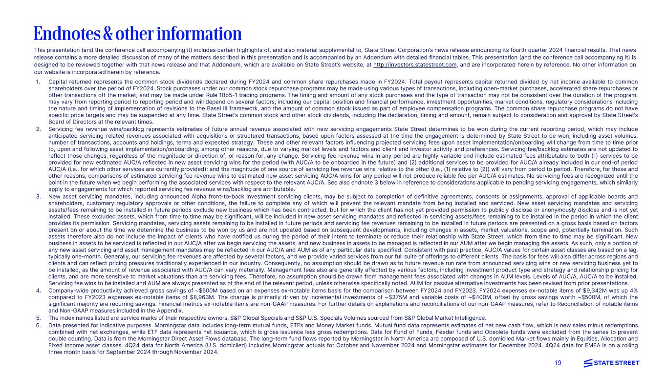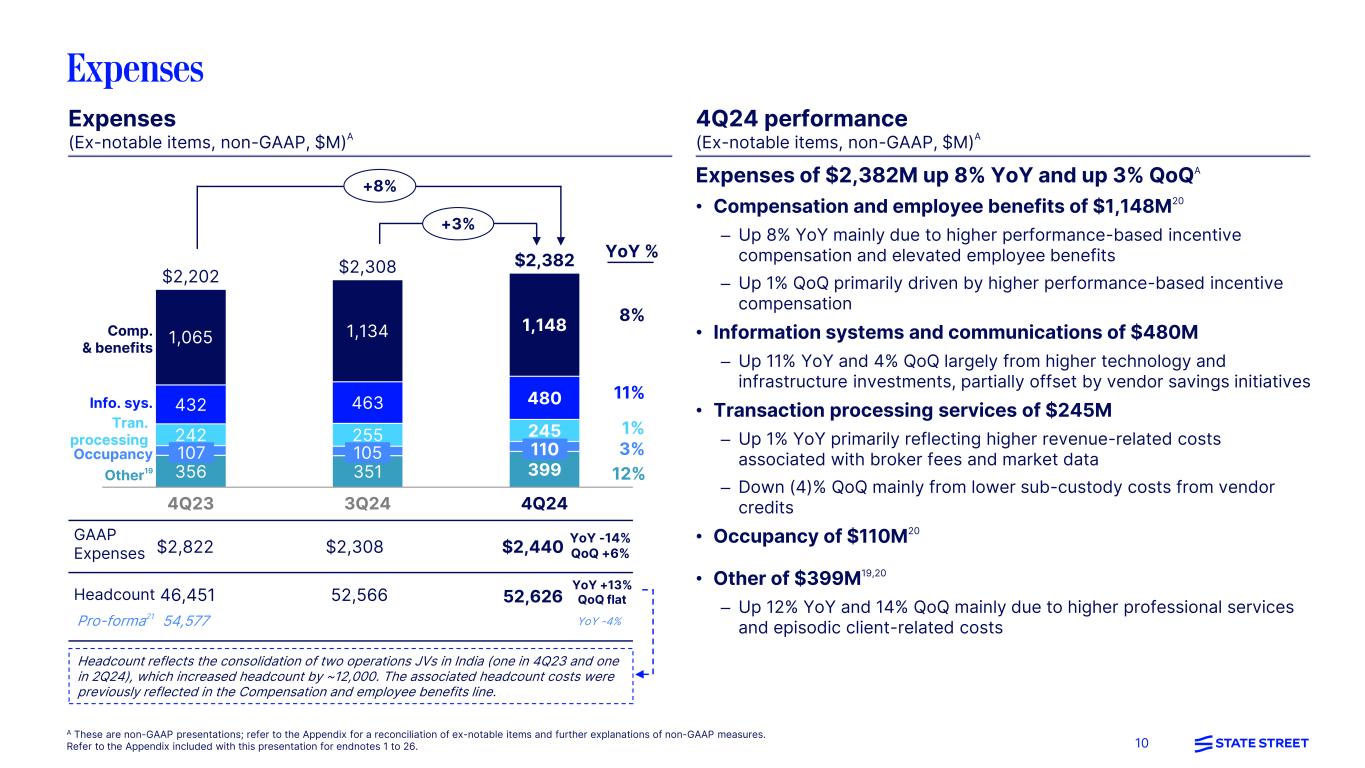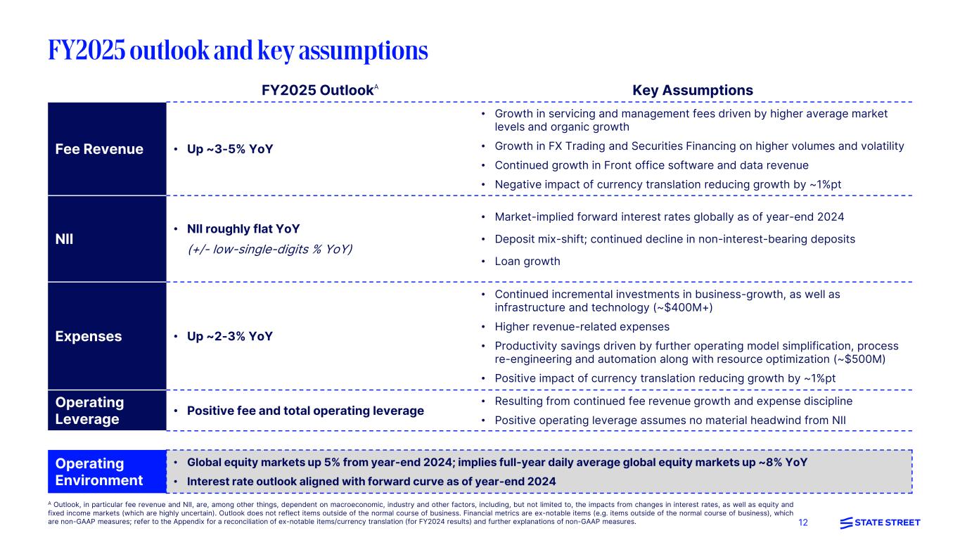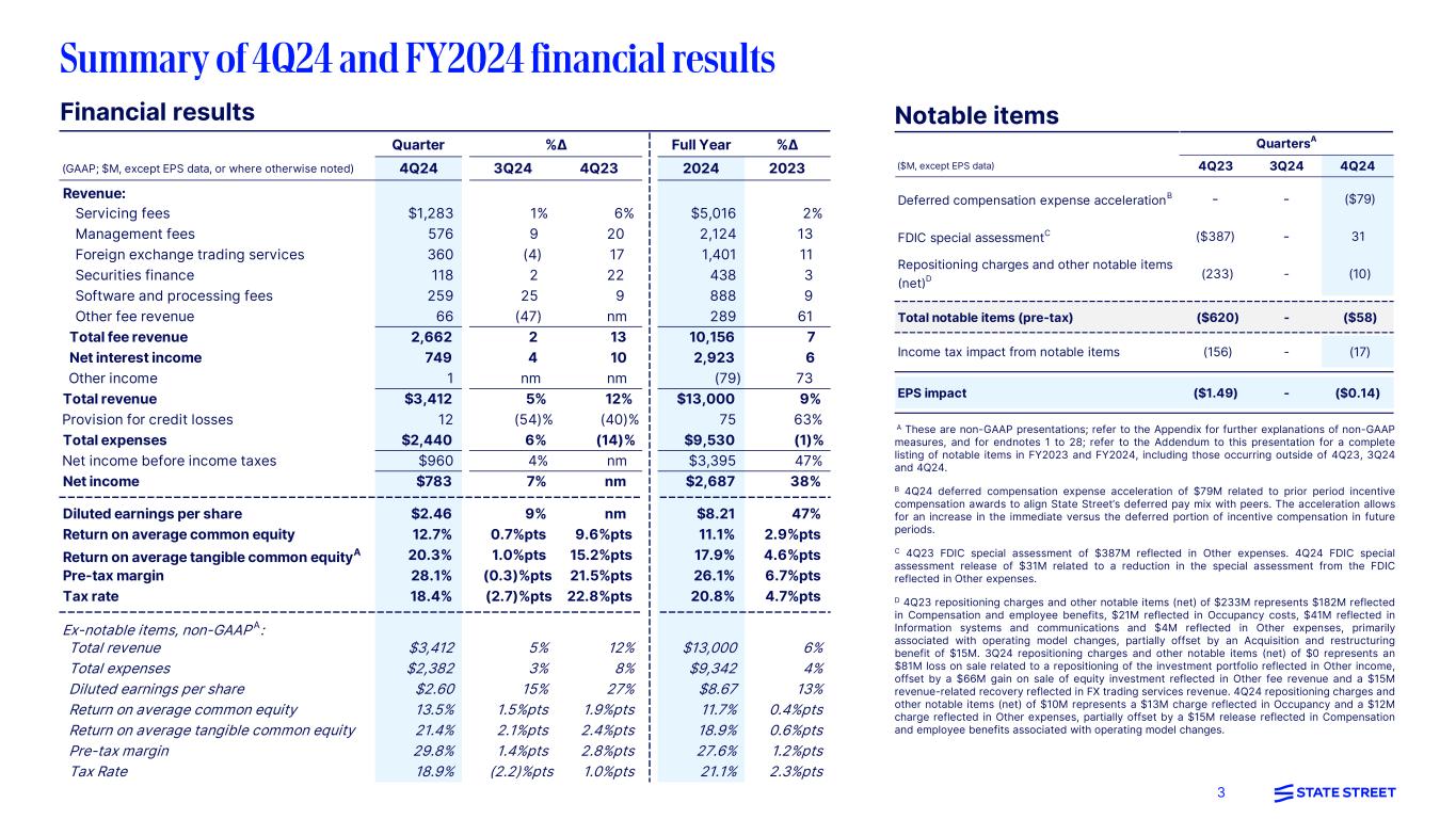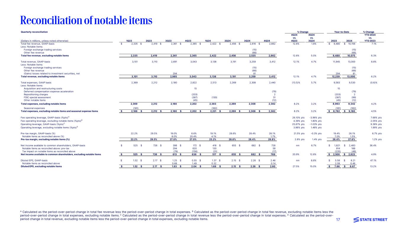 -ステート・ストリートの繰延報酬の構成比を同業他社に合わせるため、前期のインセンティブ報酬に関連する繰延報酬費用を4Q24に7,900万ドル前倒しした。