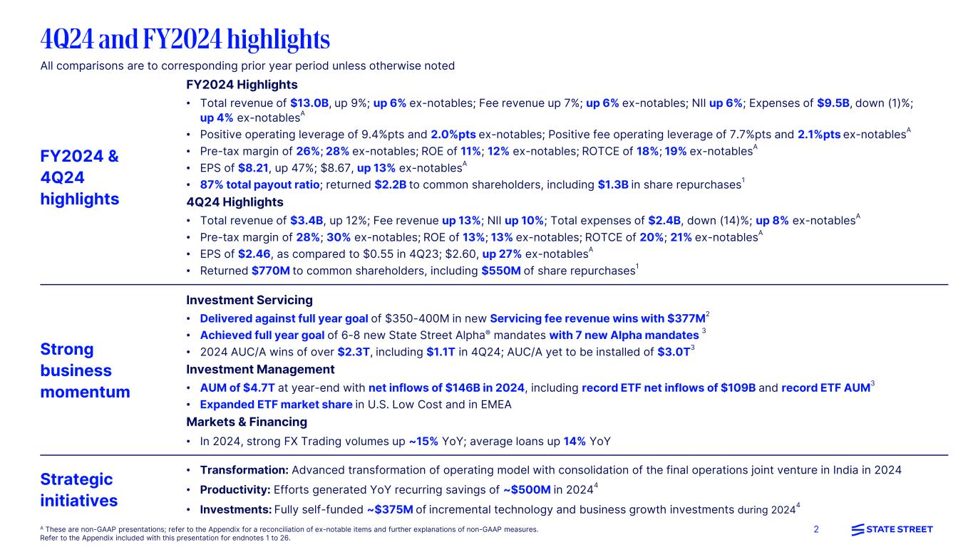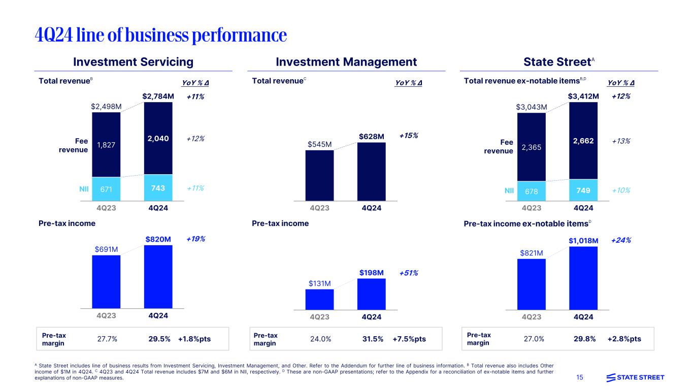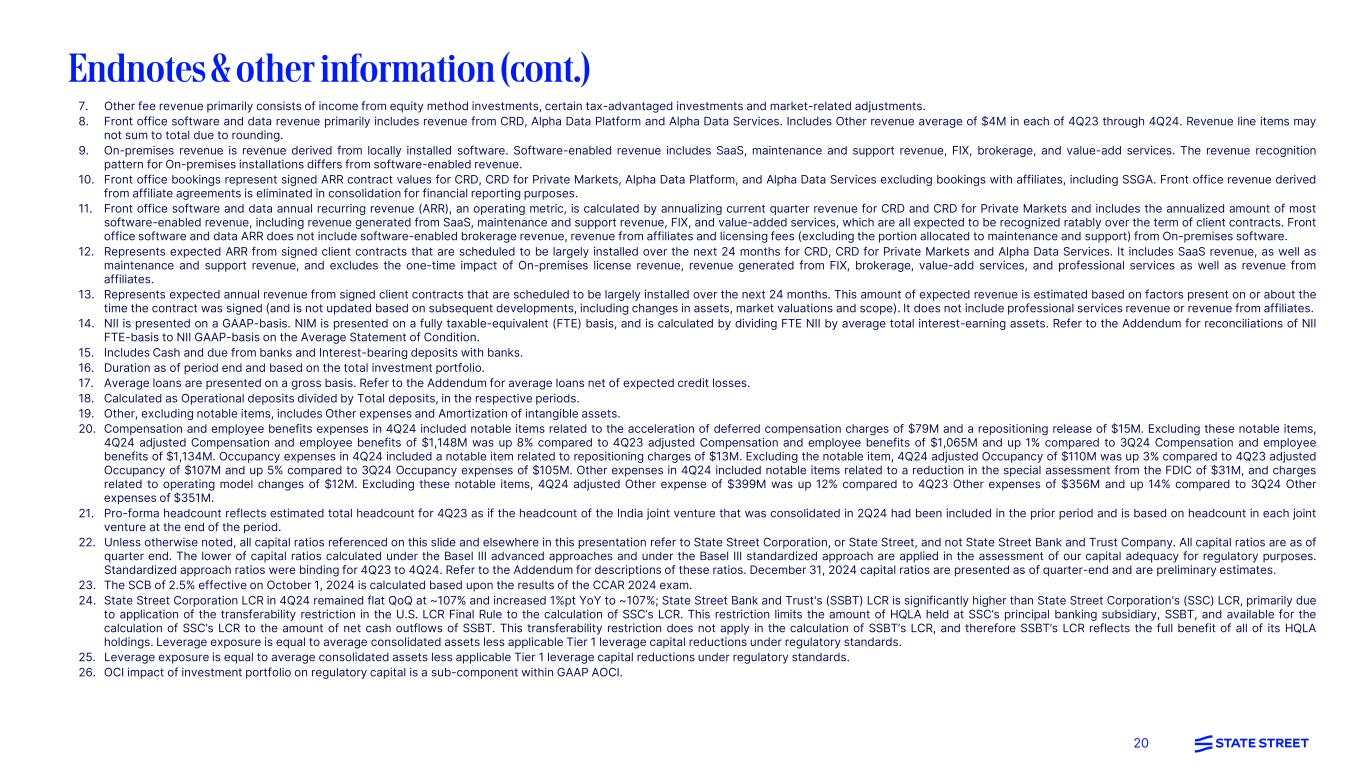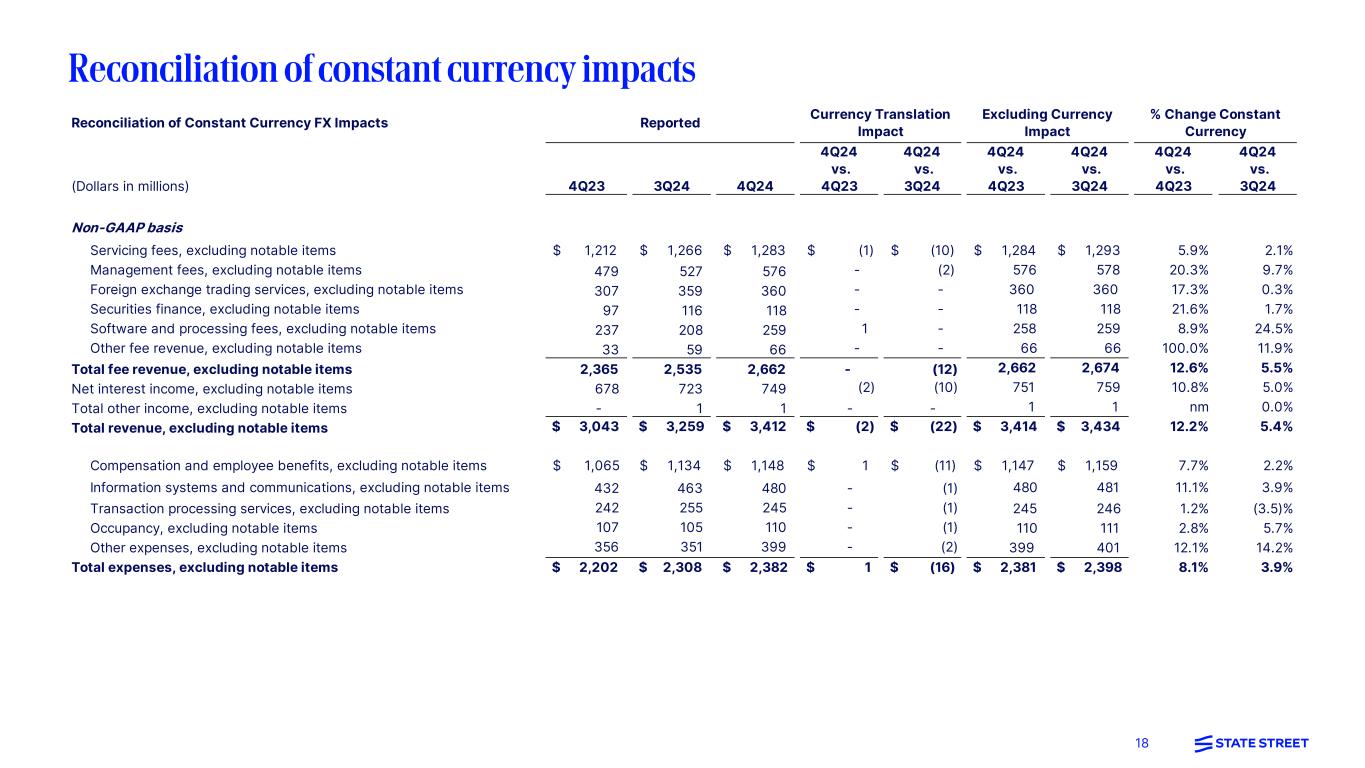 -ステート・ストリートの繰延報酬の構成比を同業他社に合わせるため、前期のインセンティブ報酬に関連する繰延報酬費用を4Q24に7,900万ドル前倒しした。