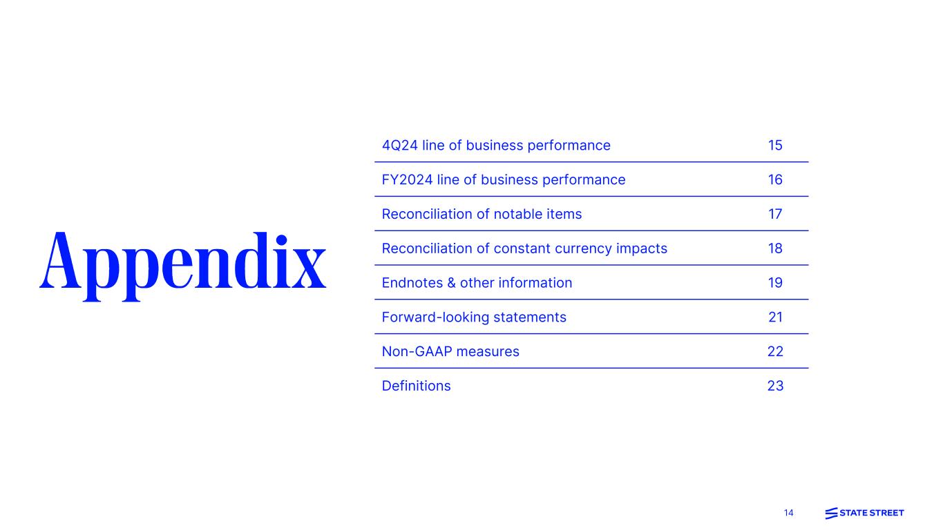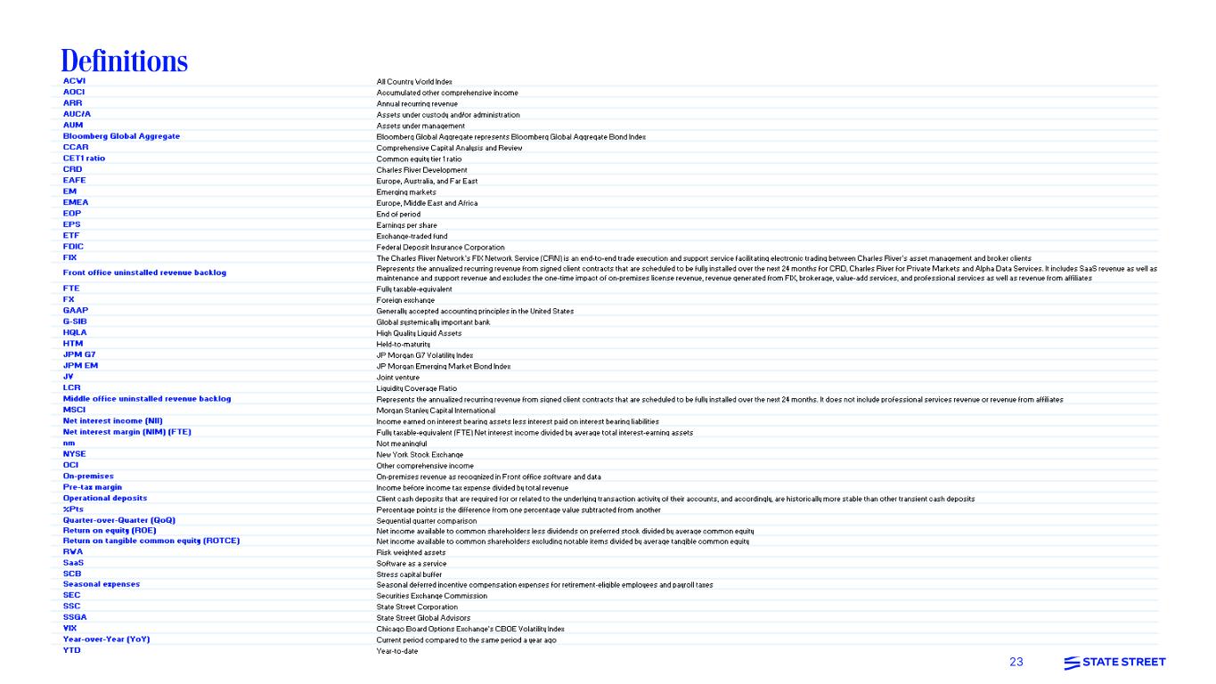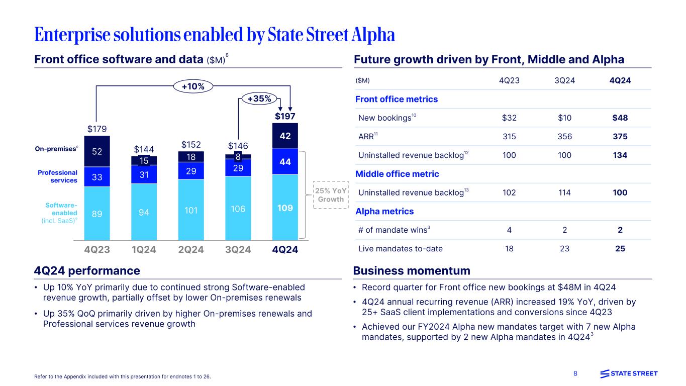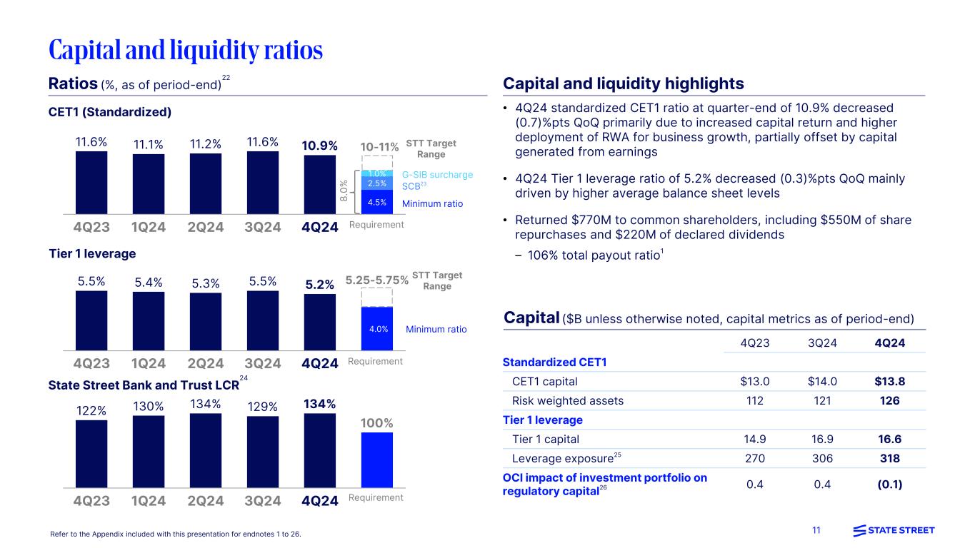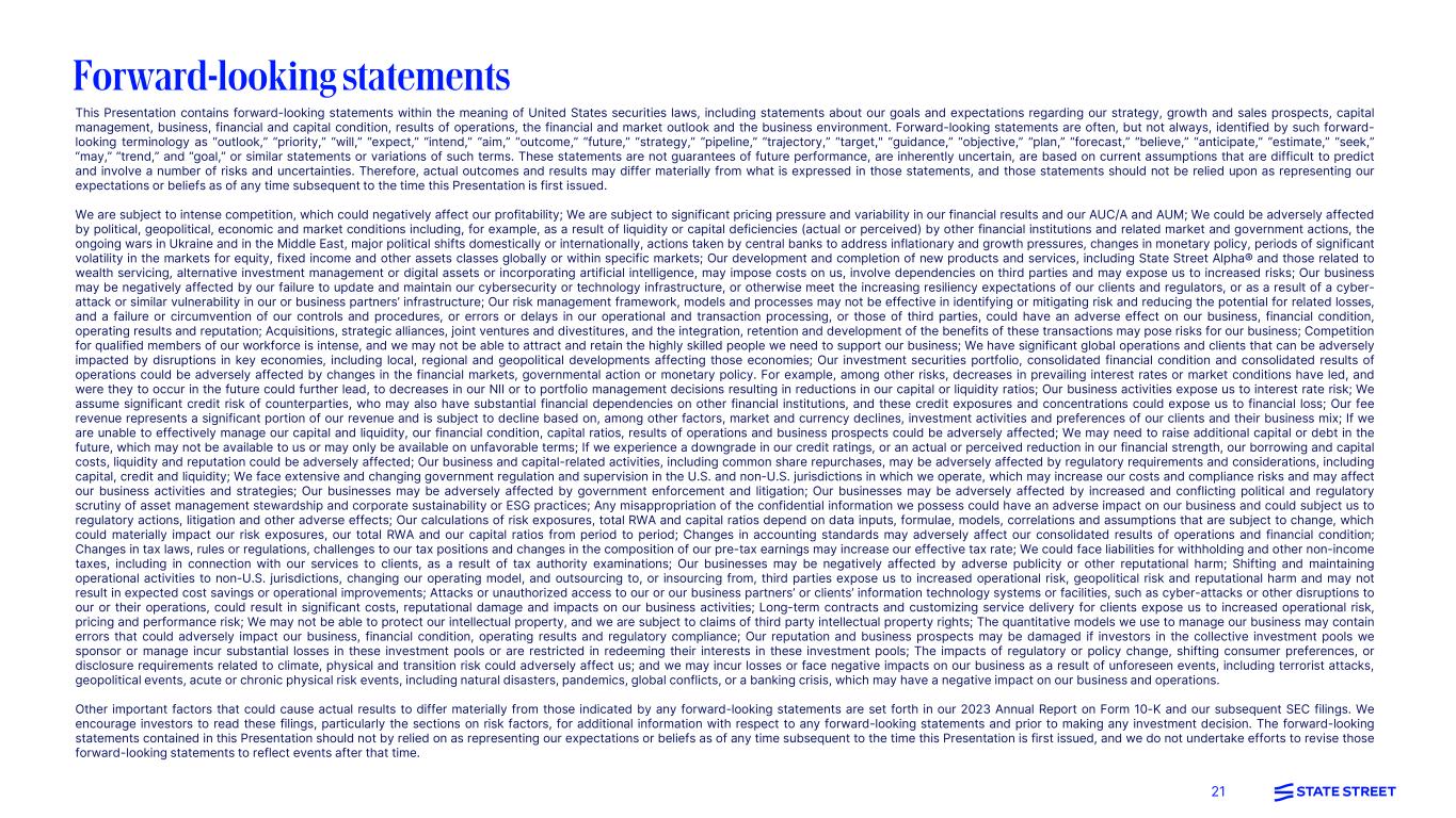 -ステート・ストリートの繰延報酬の構成比を同業他社に合わせるため、前期のインセンティブ報酬に関連する繰延報酬費用を4Q24に7,900万ドル前倒しした。
