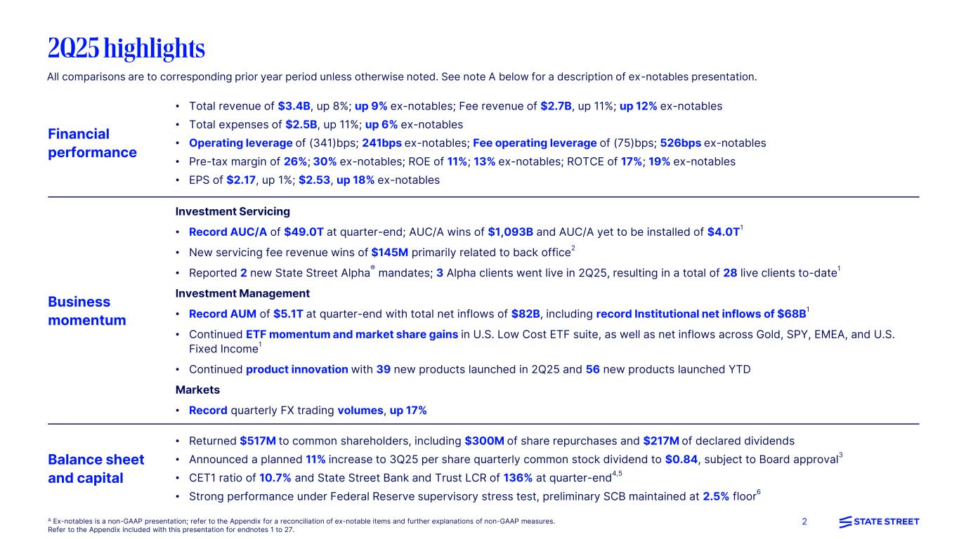 | ステート・ストリート、2025年第2四半期のEPSは2.17ドル、特筆すべき項目を除くと2.53ドル |