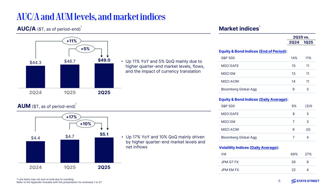 (a) 特筆すべき項目のリストおよび本プレスリリースにおける開示の詳細については、「25年第2四半期ハイライト」および「本ニュースリリース」を参照されたい。特筆すべき項目を除いた業績は非GAAP指標です。非 GAAP 指標の説明と調整については、本ニュース・リリースに含まれる補遺をご参照ください。AUC/AおよびAUMは四半期末現在で表示されており、上記の増減率は第2四半期の前年同期比を反映しています。