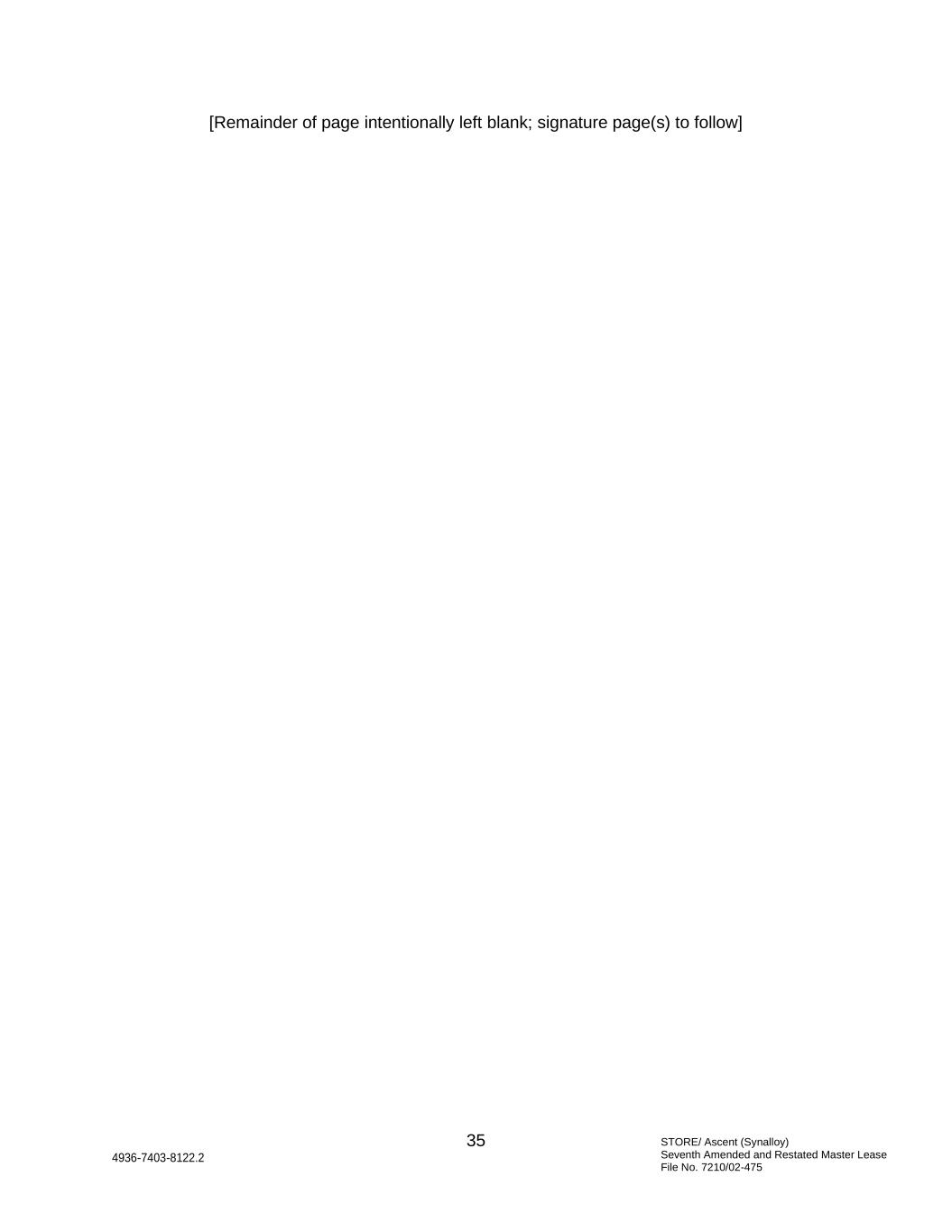 STORE/ Ascent (Synalloy) Seventh Amended and Restated Master Lease File No. 7210/02-475 35 4936-7403-8122.2 [Remainder of page intentionally left blank; signature page(s) to follow]