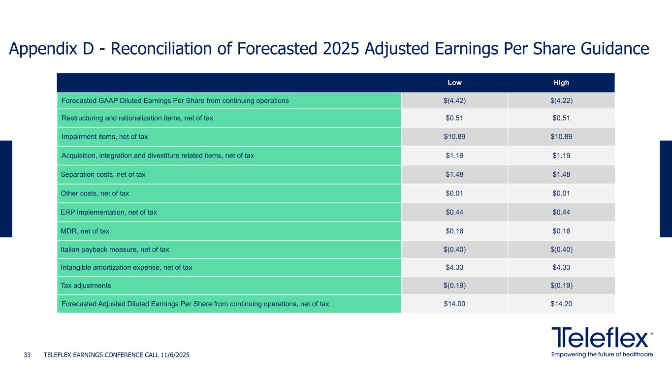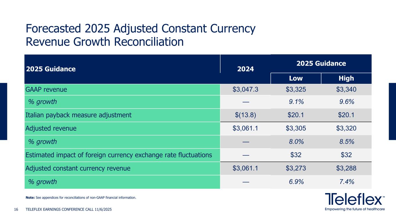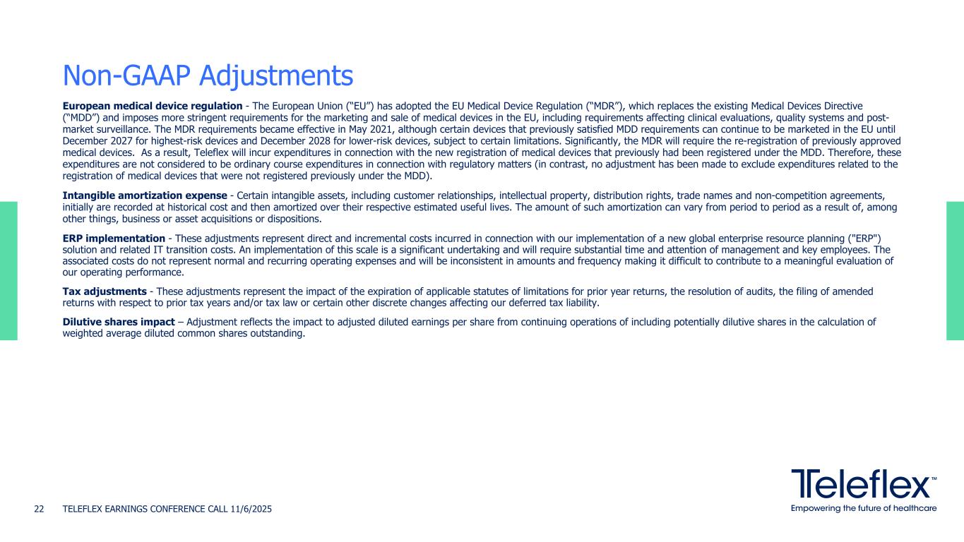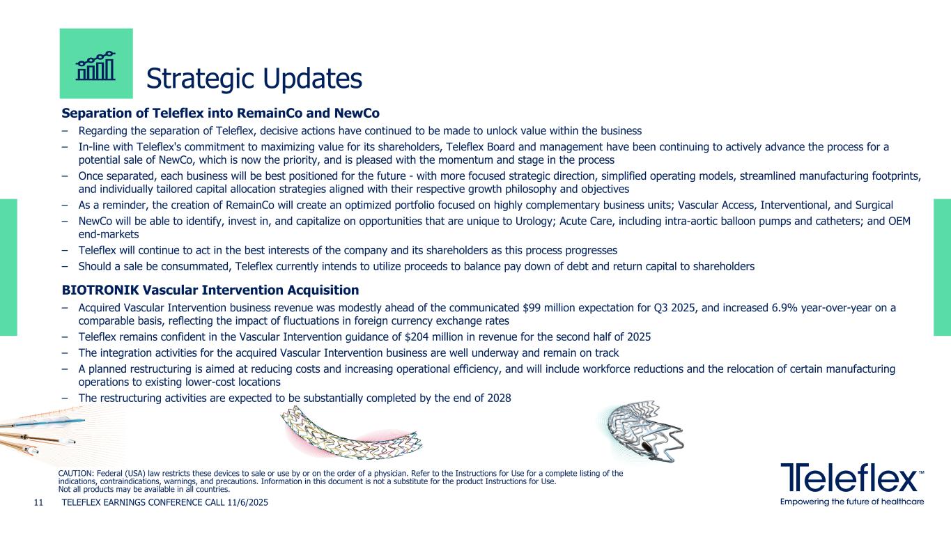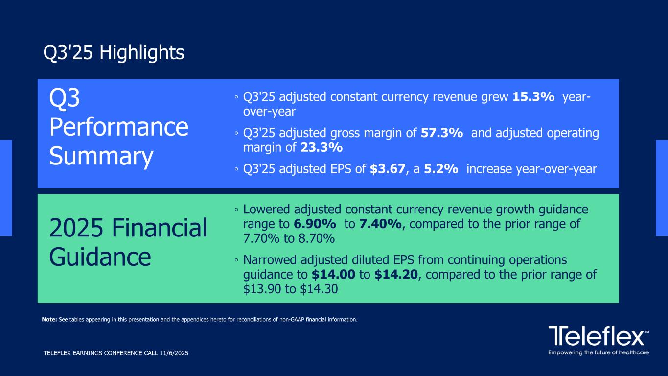 テレフレックス、第3四半期決算と2025年通期見通しについて