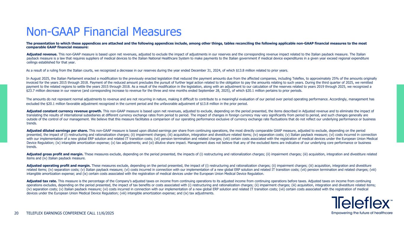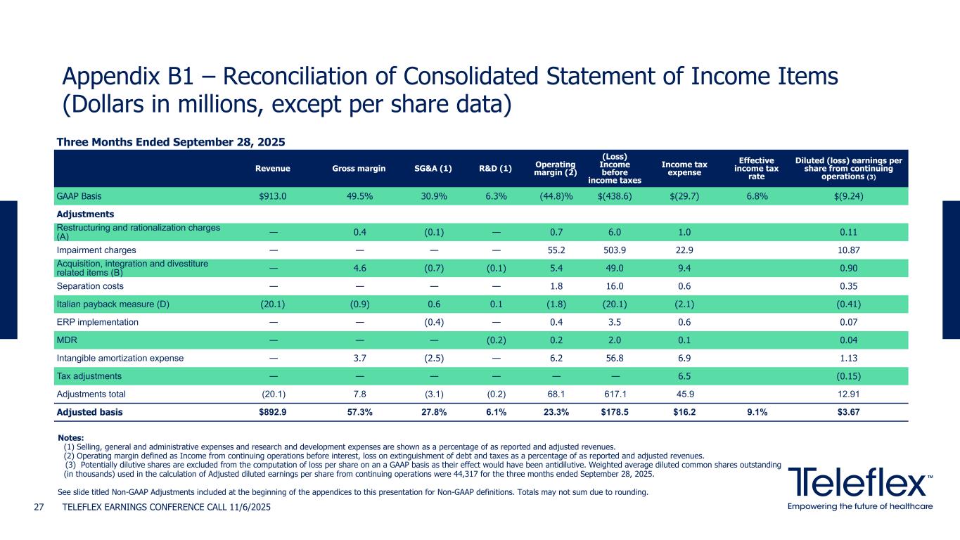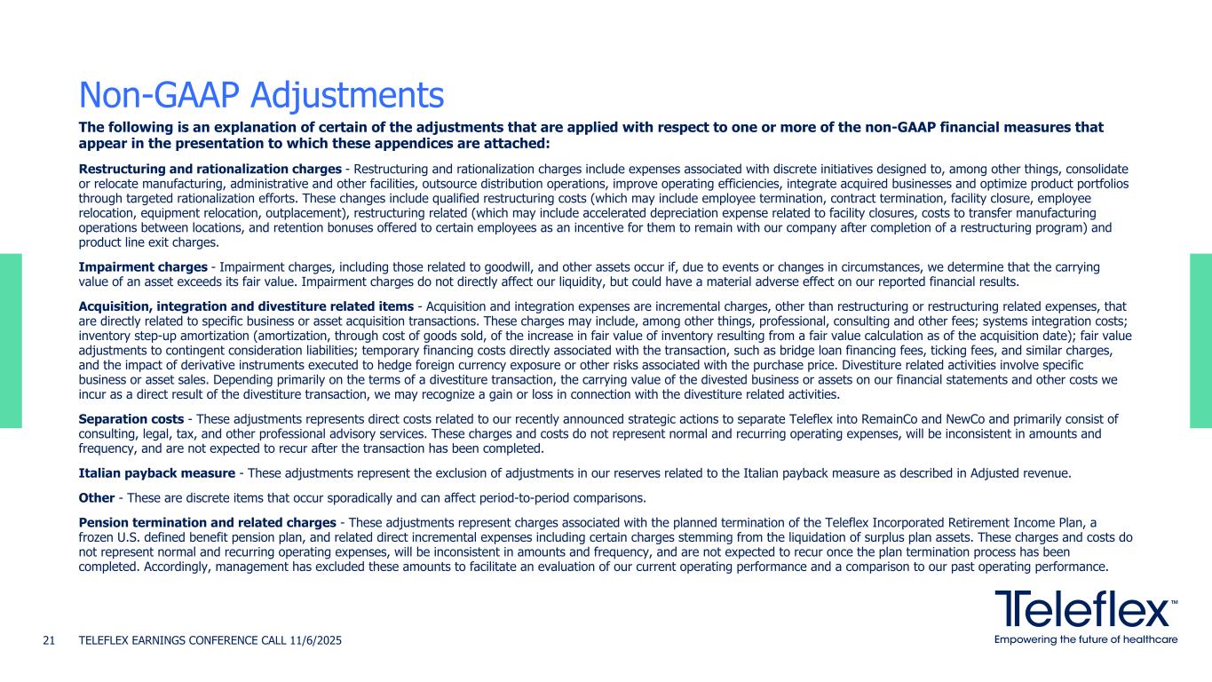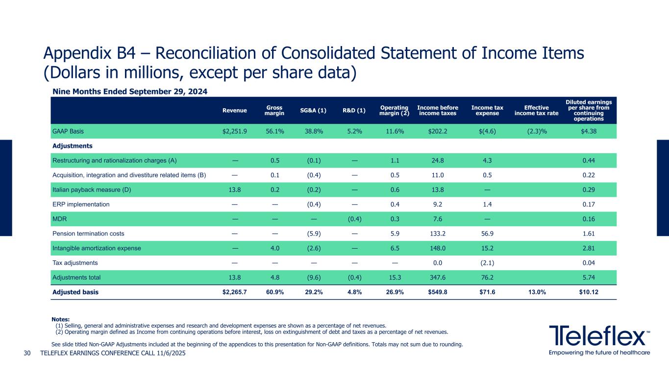 ペンシルベニア州ウェイン--テレフレックス・インコーポレイテッド(NYSE: TFX)(以下「当社」)は本日、2025年9月28日締めの第3四半期決算を発表した。