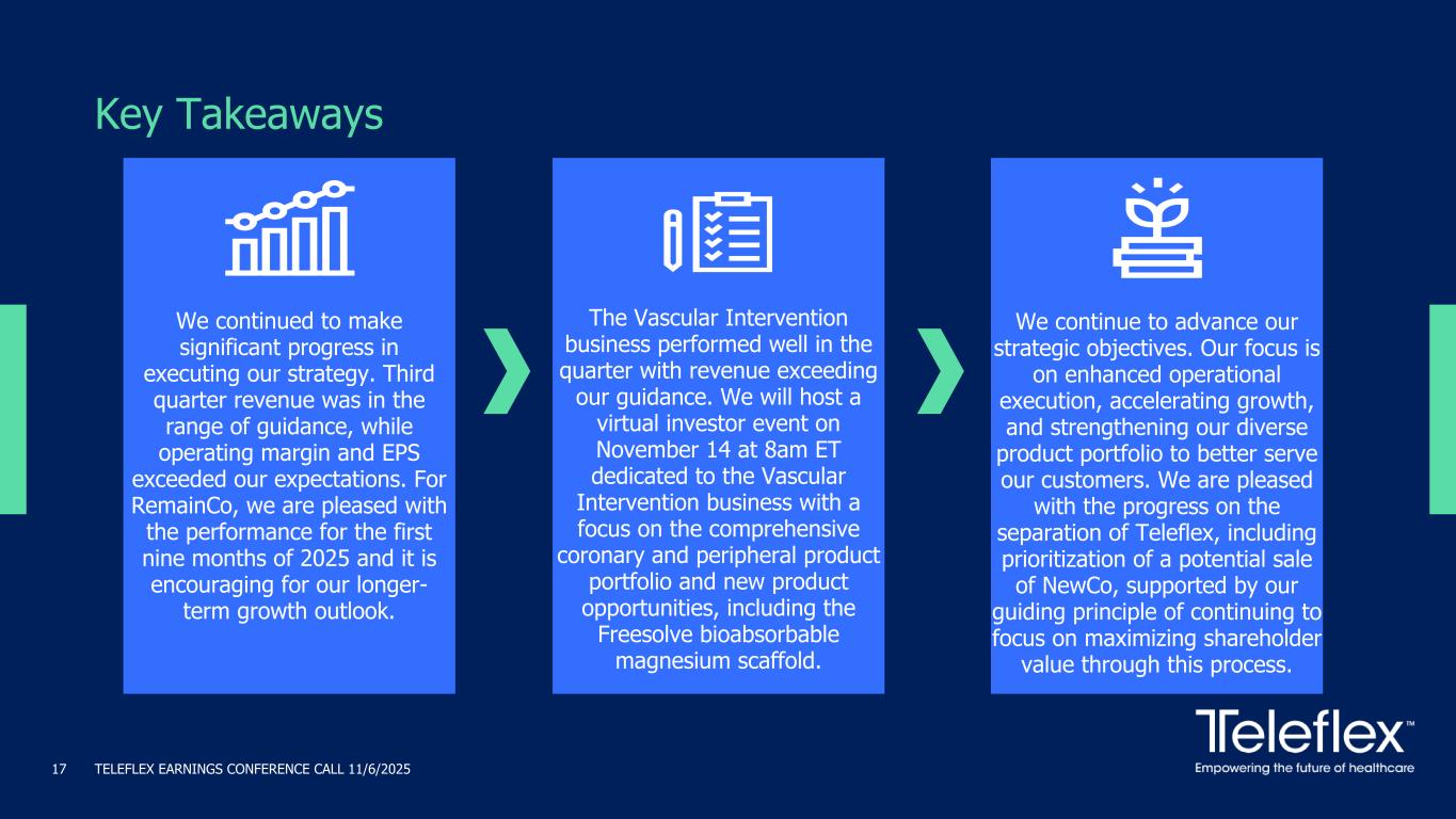 テレフレックスの2025年第3四半期投資家向け電話会議のウェブキャストは、当社ウェブサイトteleflex.comのリンクからライブでアクセスできます。電話会議は2025年11月6日午前8時(米国東部時間)に開始されます。