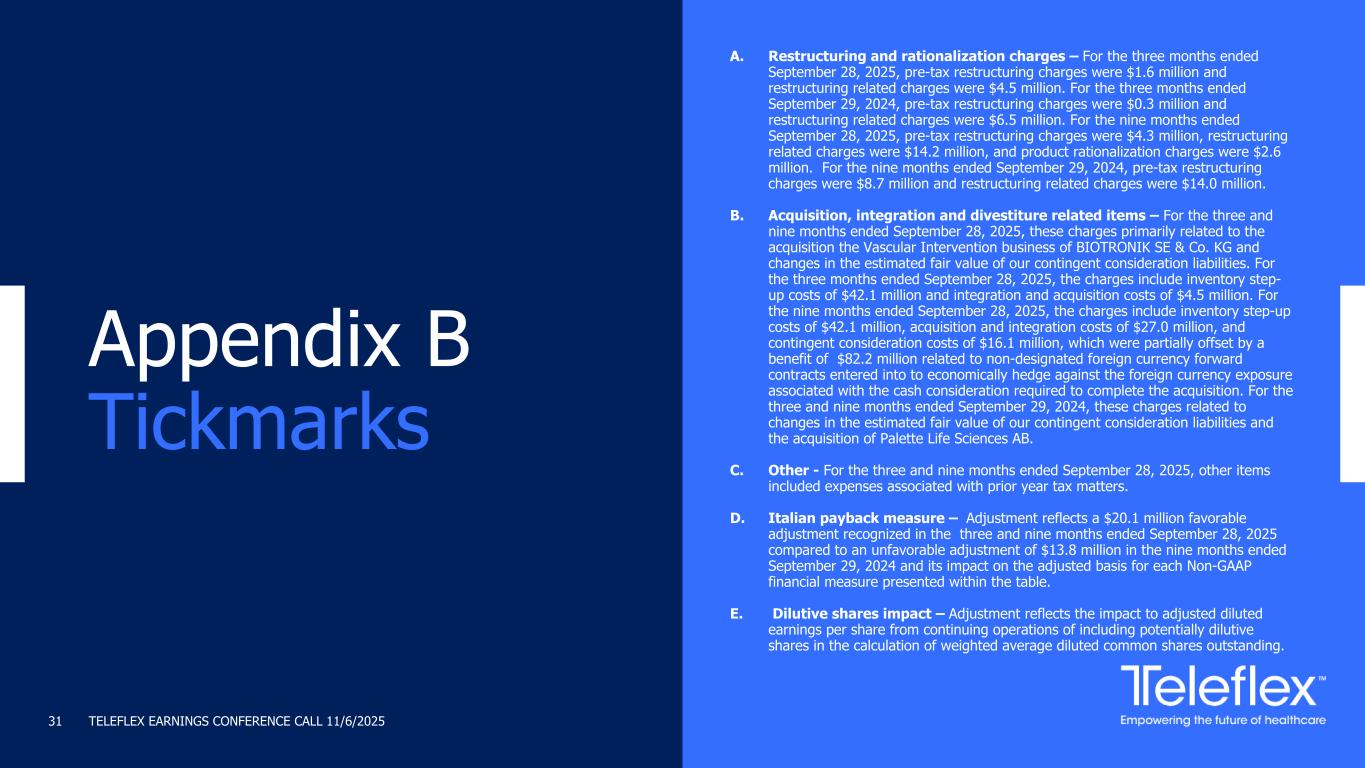 2025年第4四半期、当社の取締役会は血管インターベンション事業のテレフレックスへの統合に関連する再編計画を承認し、開始しました。この計画には、人員削減を含むグローバルな営業部隊と特定の管理機能の再編、および特定の製造業務の既存の低コスト拠点への移転が含まれます。リストラ費用は3,600万ドルから4,400万ドルと見積もられ、2028年末までに実質的に完了する予定である。