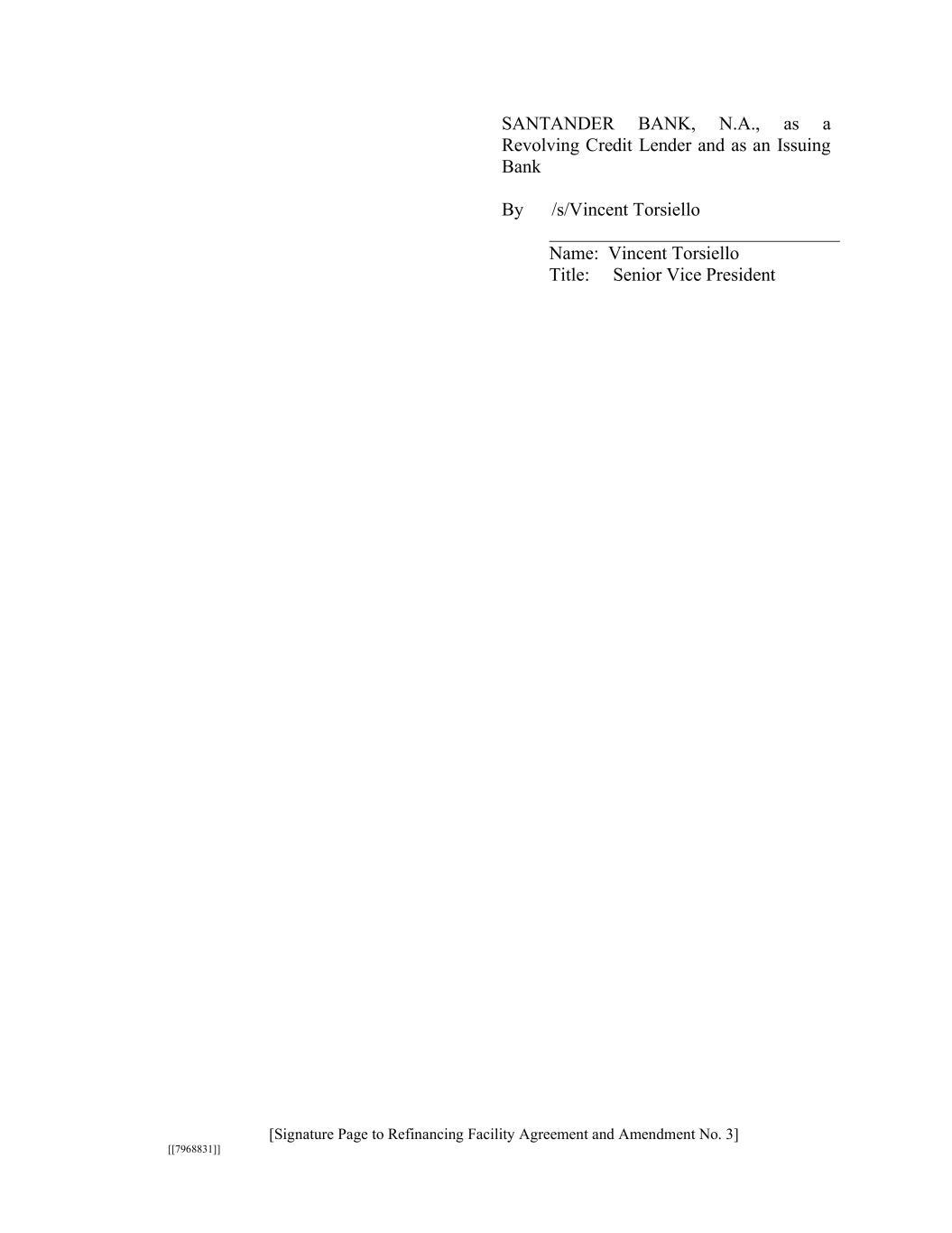 [Signature Page to Refinancing Facility Agreement and Amendment No. 3] [[7968831]] SANTANDER BANK, N.A., as a Revolving Credit Lender and as an Issuing Bank By /s/Vincent Torsiello Name: Vincent Torsiello Title: Senior Vice President