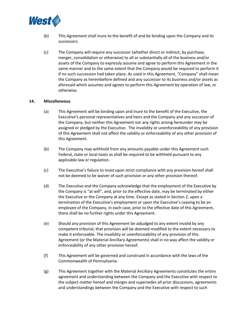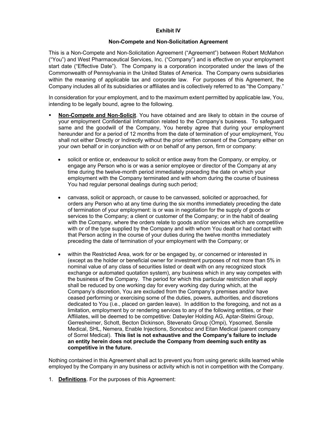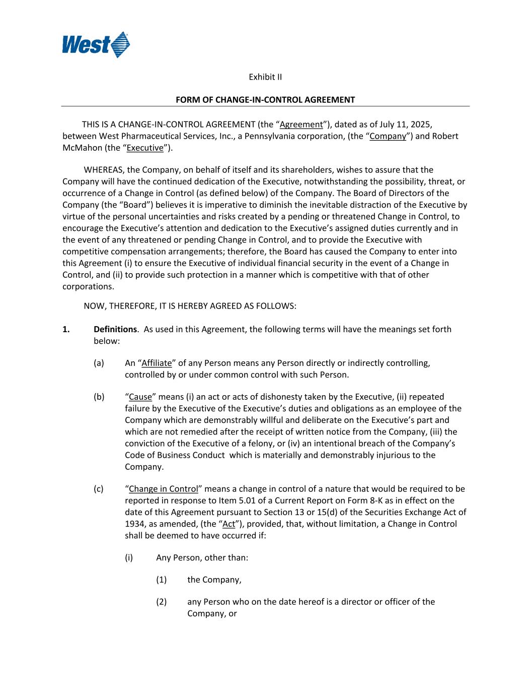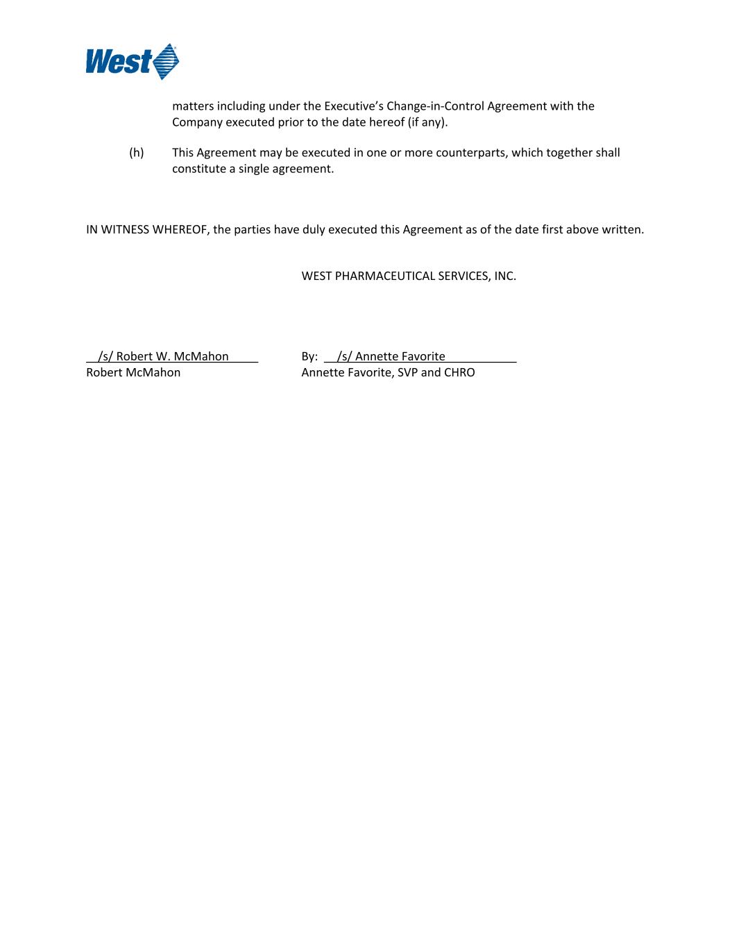 ウエスト・ファーマシューティカル・サービス・インクとロバート・マクマホンとの間の2025年7月11日付オファーレター。 |