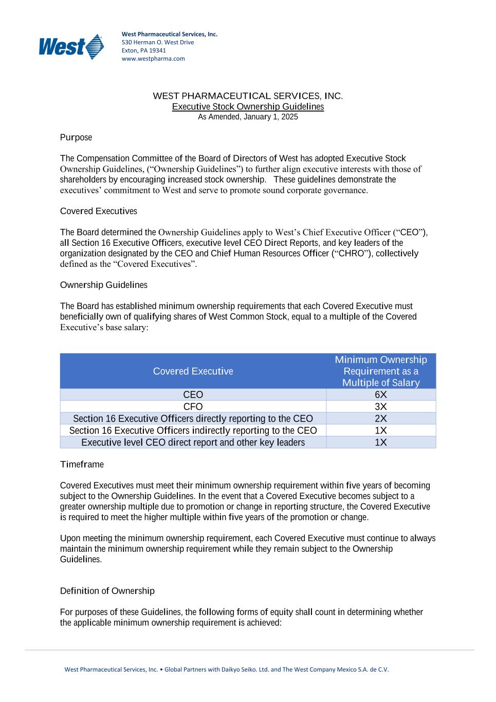 | WEST PHARMACEUTICAL SERVICES, INC. |