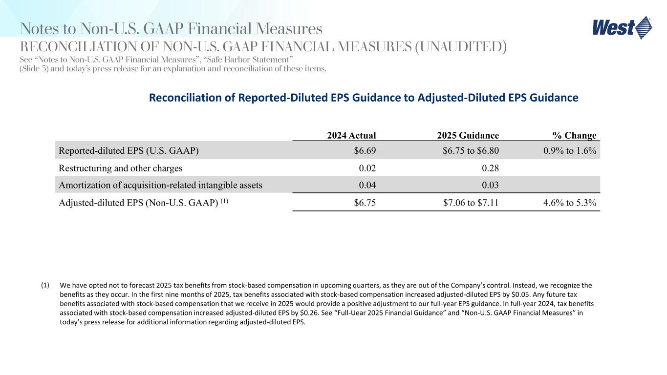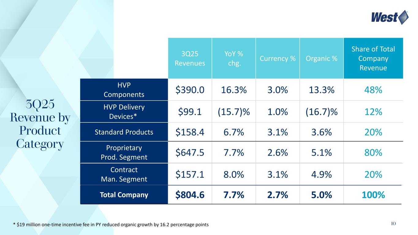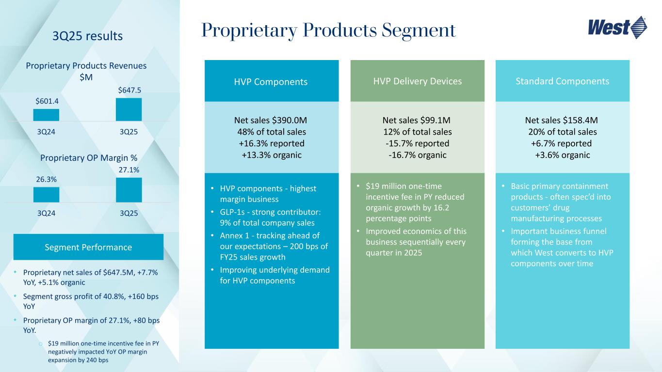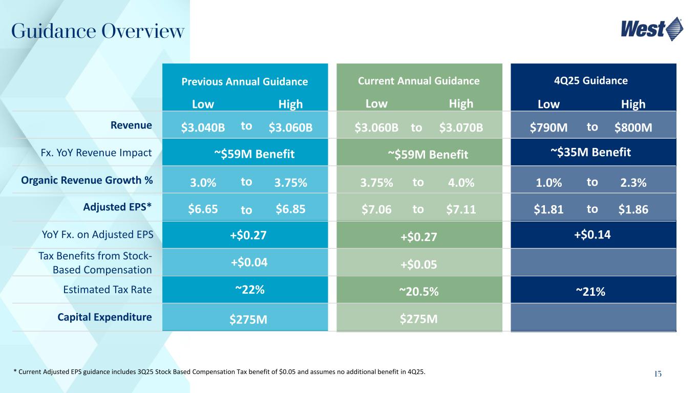 ペンシルベニア州エクストン、2025年10月23日-革新的で高品質な注射剤ソリューションとサービスの大手プロバイダーであるウエスト・ファーマシューティカル・サービス(NYSE:WST)は本日、2025年第3四半期の業績を発表した。