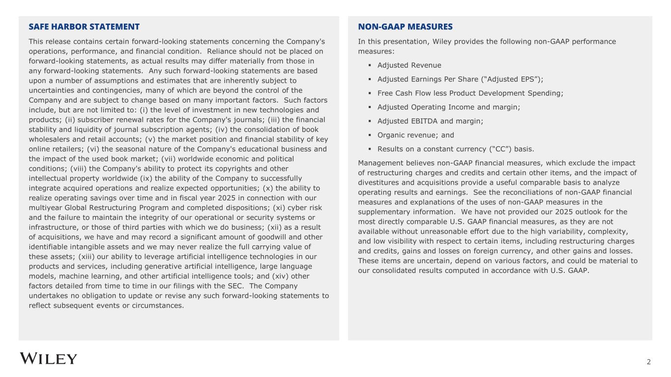 On January 1, 2024, we completed the sale of University Services. On May 31, 2024, we completed the sale of Wiley Edge, with the exception of its India operations which sold on August 31, 2024. On August 31, 2024, we completed the sale of CrossKnowledge. On May 31, 2023, we completed the sale of Tuition Manager.
