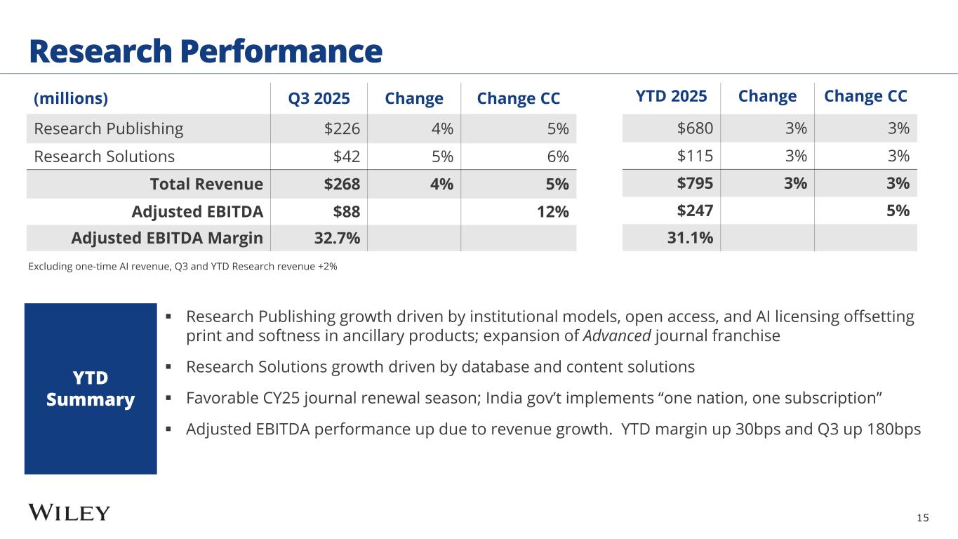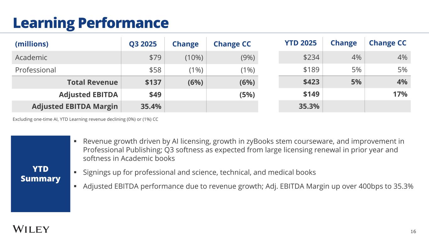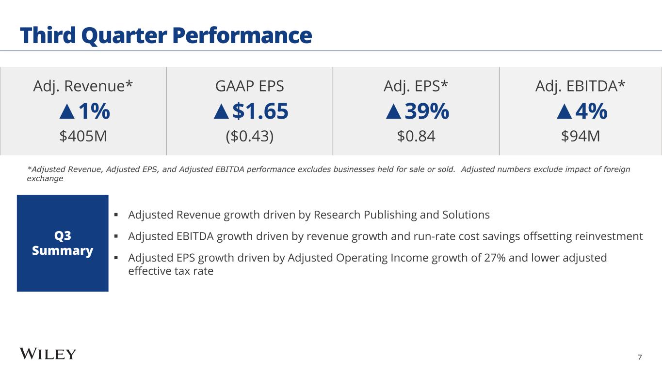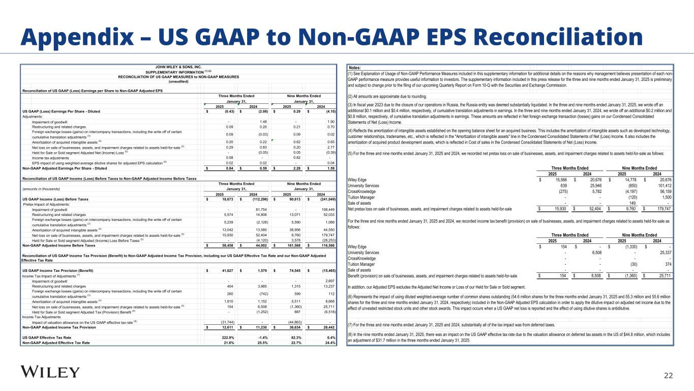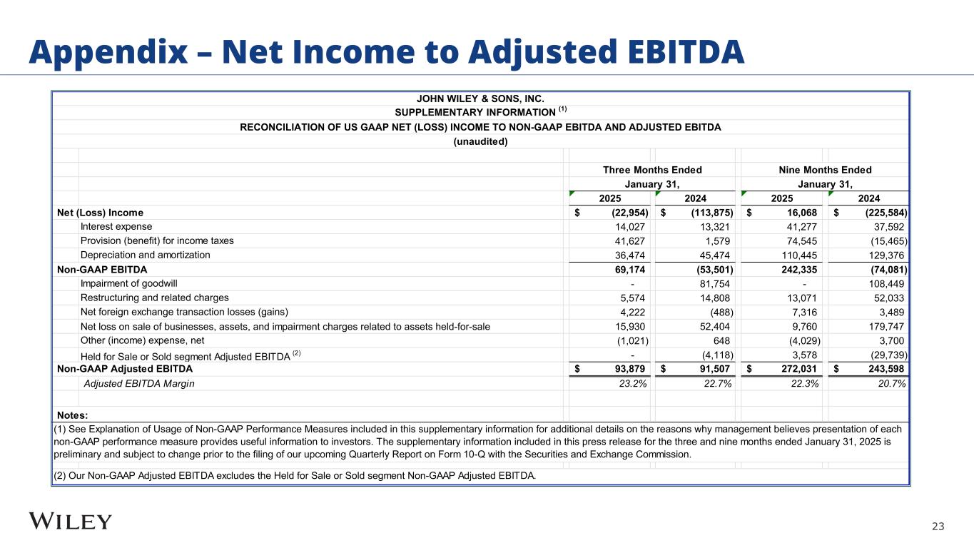 In the three months ended January 31, 2025, we recognized a net loss of $15.6 million for Wiley Edge primarily due to subsequent changes in the fair value less costs to sell. We reduced the fair value of the contingent consideration in the form of an earnout from $15.0 million to zero as of January 31, 2025, as current market conditions have significantly lowered expected gross profit below the payment threshold required in the agreement.